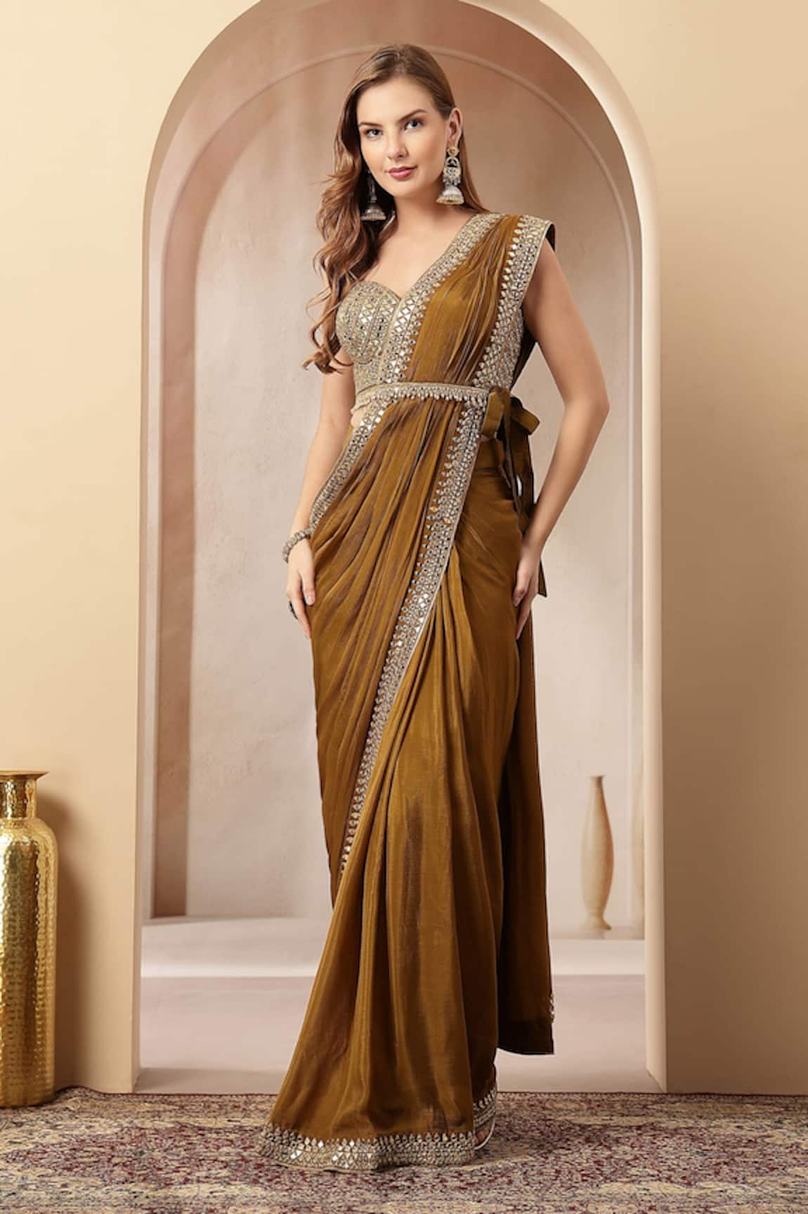 Sunehri Pre-Draped Saree With Blouse