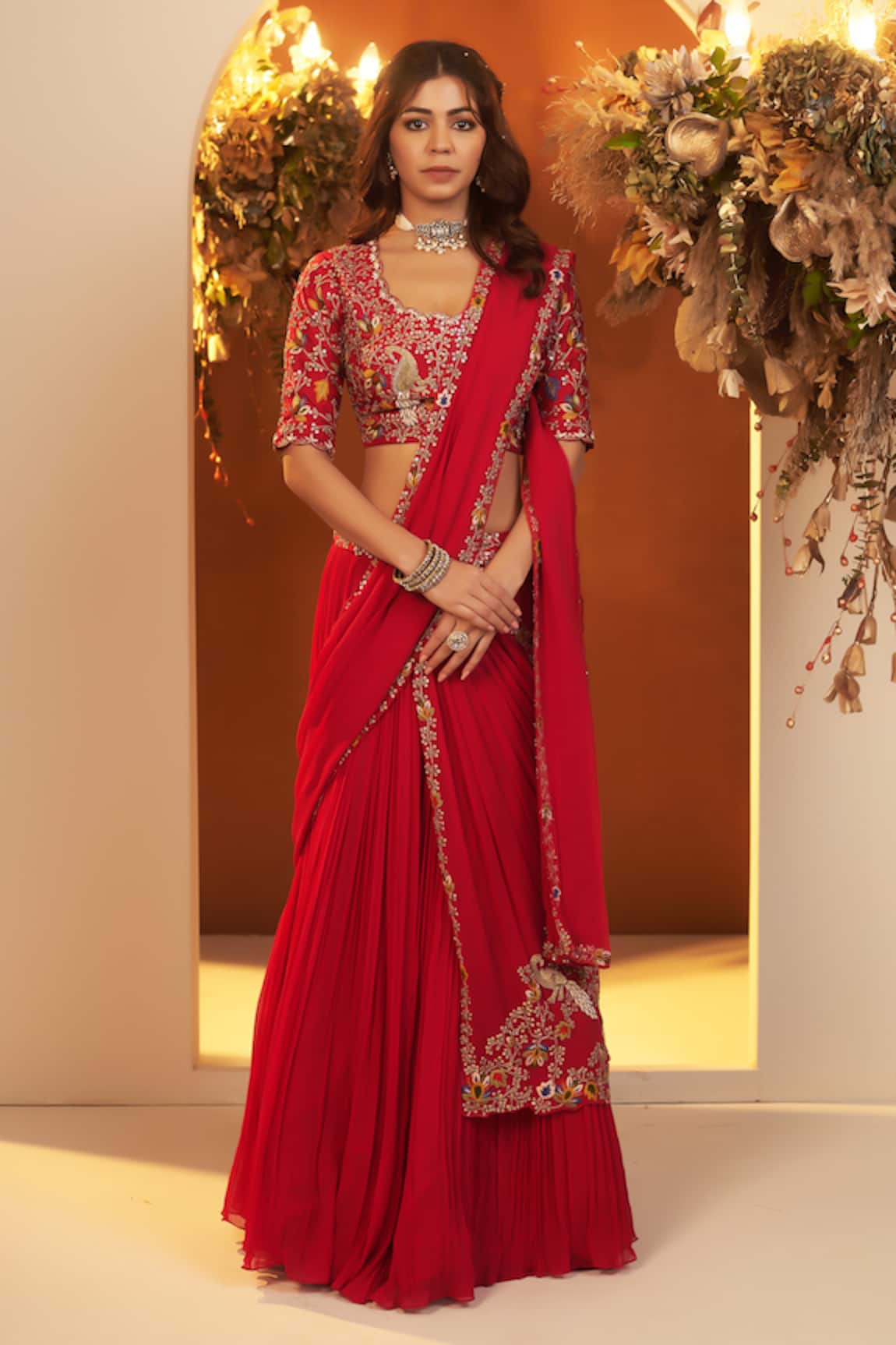 Embroidered Mermaid Saree & Velvet Blouse Set