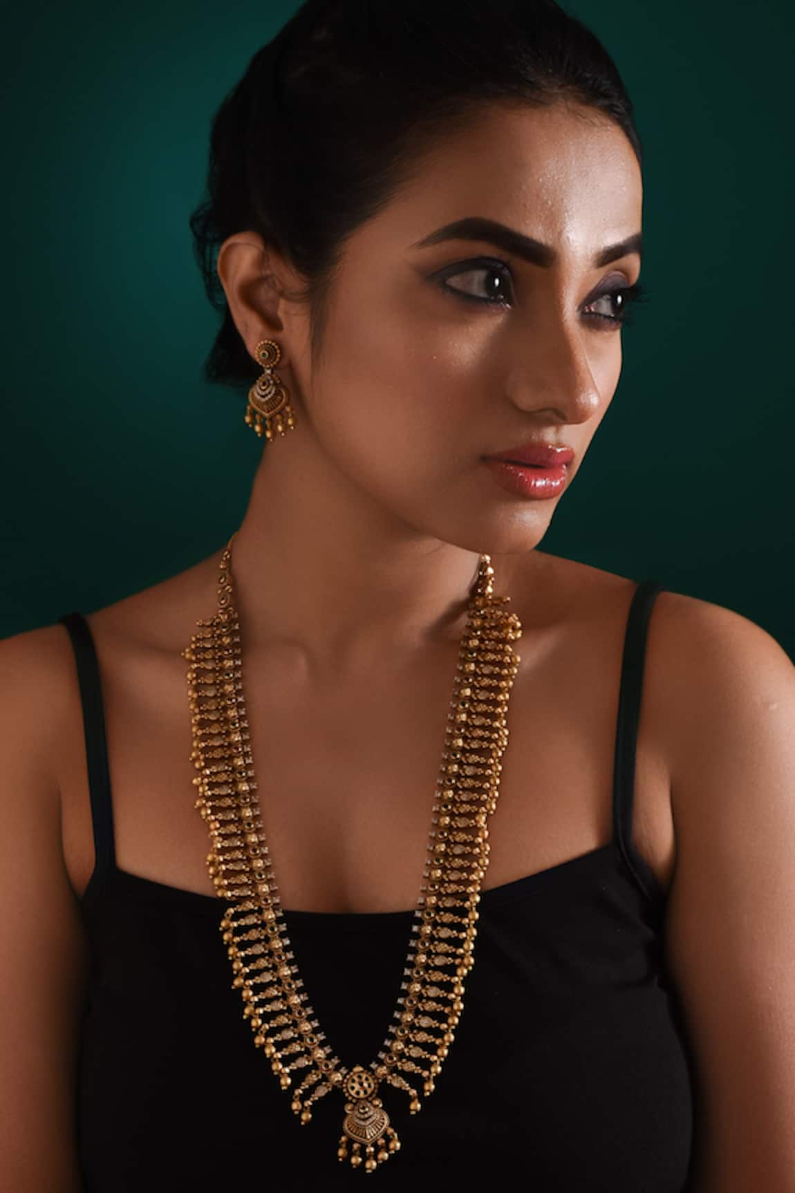 Divine Elegance Studded Fringe Long Necklace Set