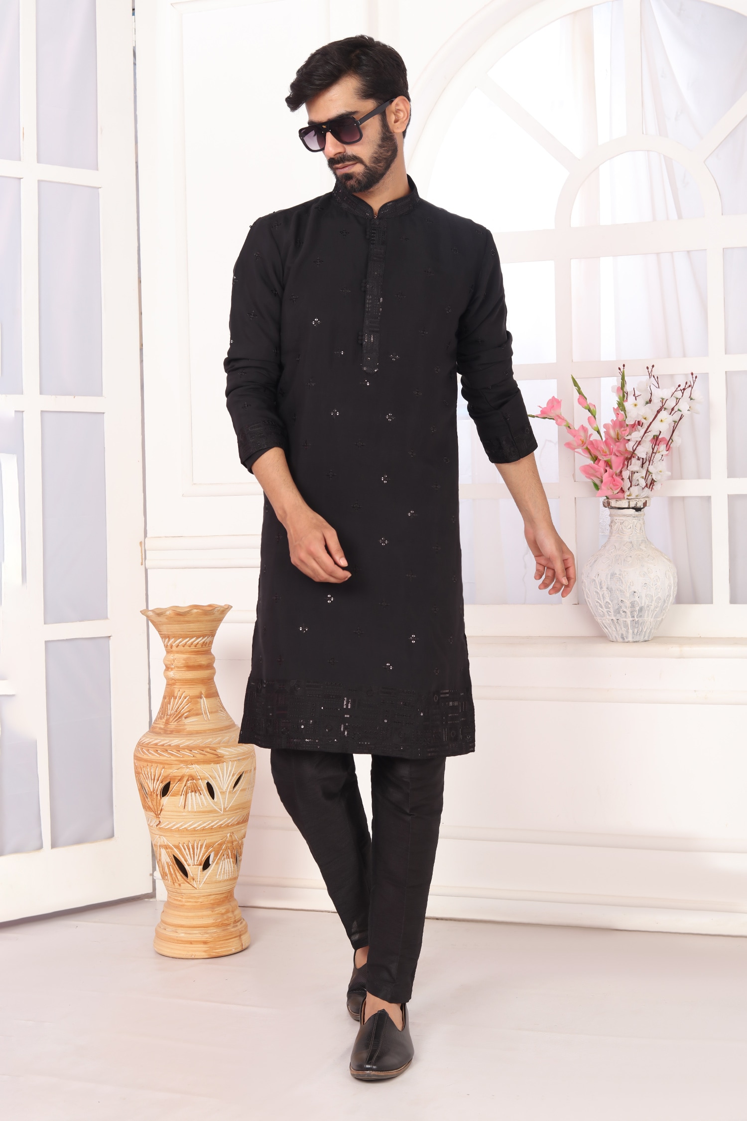 Dotted Swiss Sequin Sherwani Kurta & Pant Set