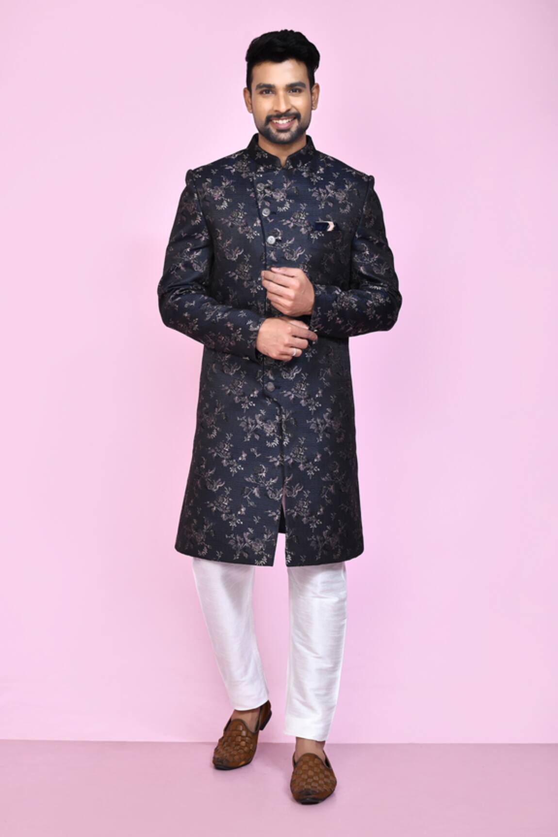 Floral Brocade Pattern Sherwani With Pant