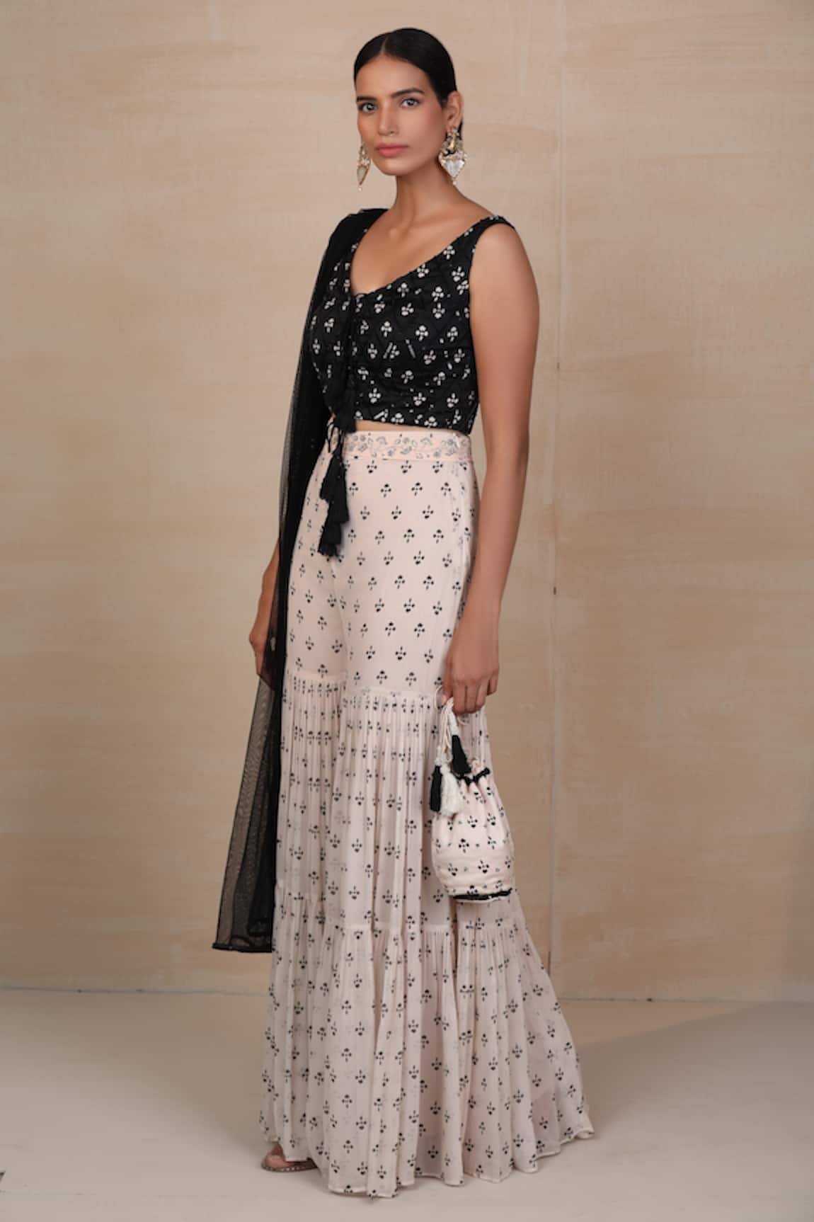 Embroidered Navy Jacket & Dhoti Skirt Set