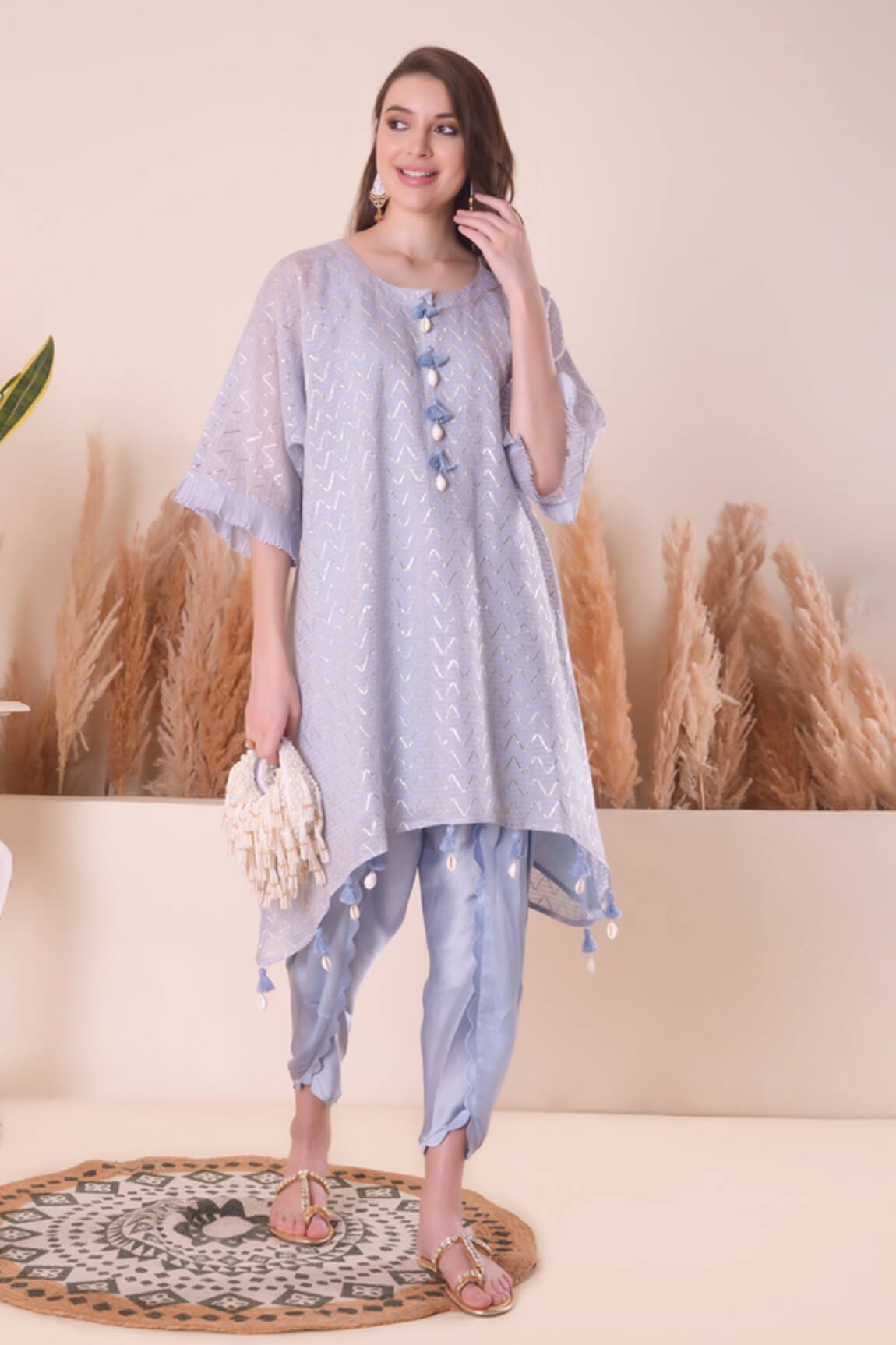 Enisa Kiran Dori Placket Embroidered Kurta & Dhoti Pant Set