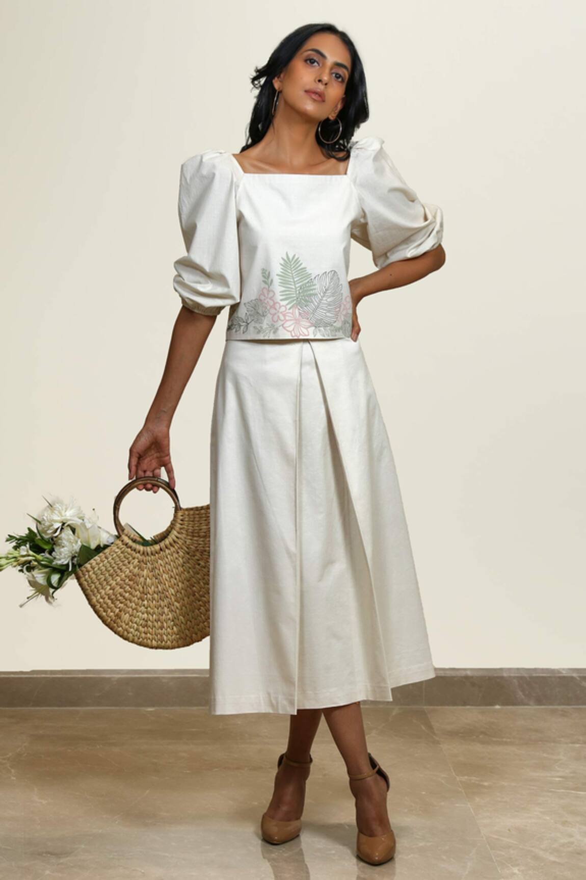 Romy & Tom Floral Embroidered Crop Top