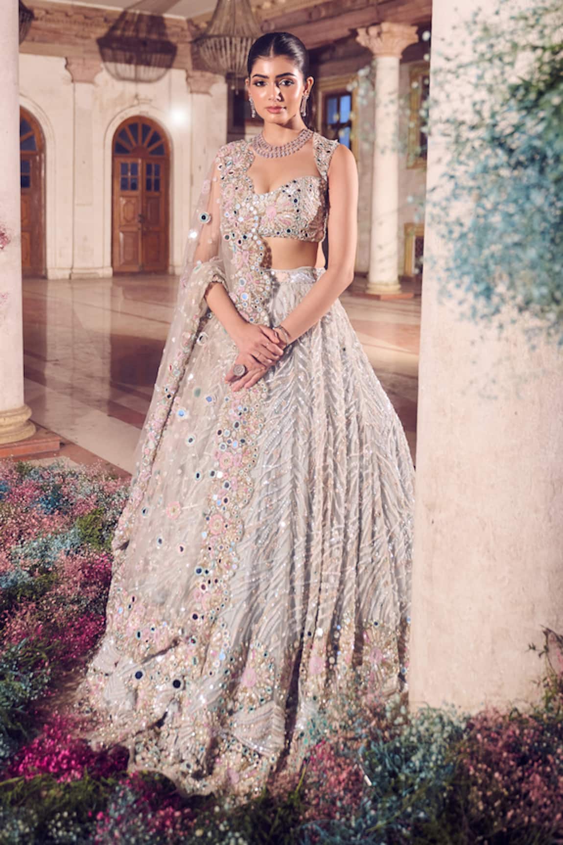 Sahiba Mirrorwork Scallop Cape Draped Skirt Set