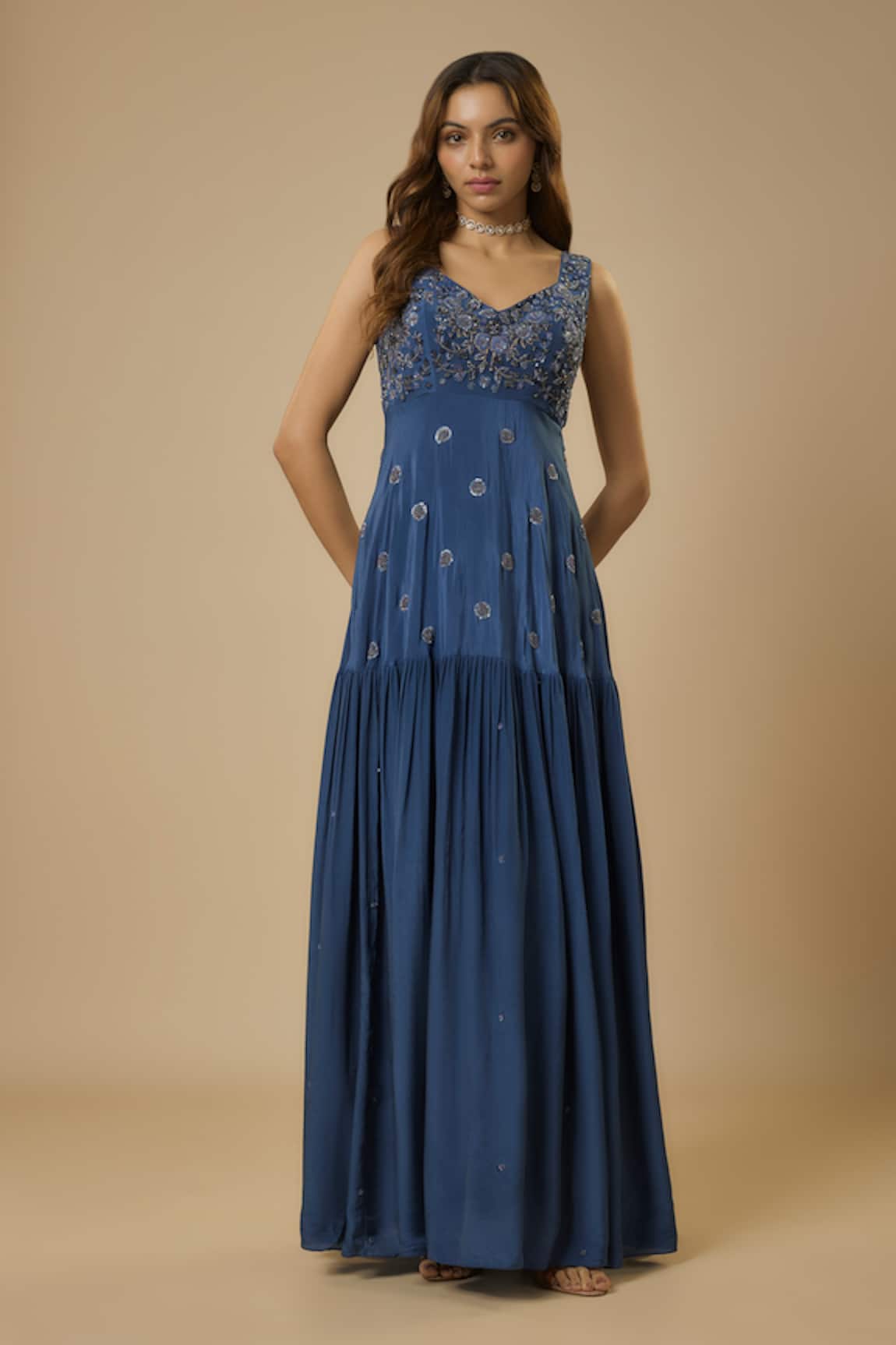 Floral Vine Bead Embellished Jacket Ombre Draped Skirt Set