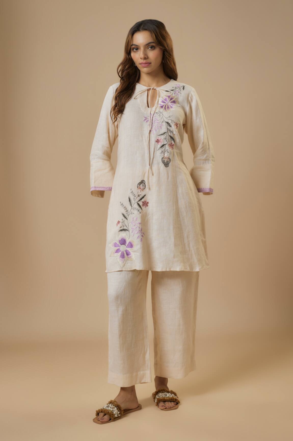 Floral Embellished Scalloped Jacket Draped Skirt Set