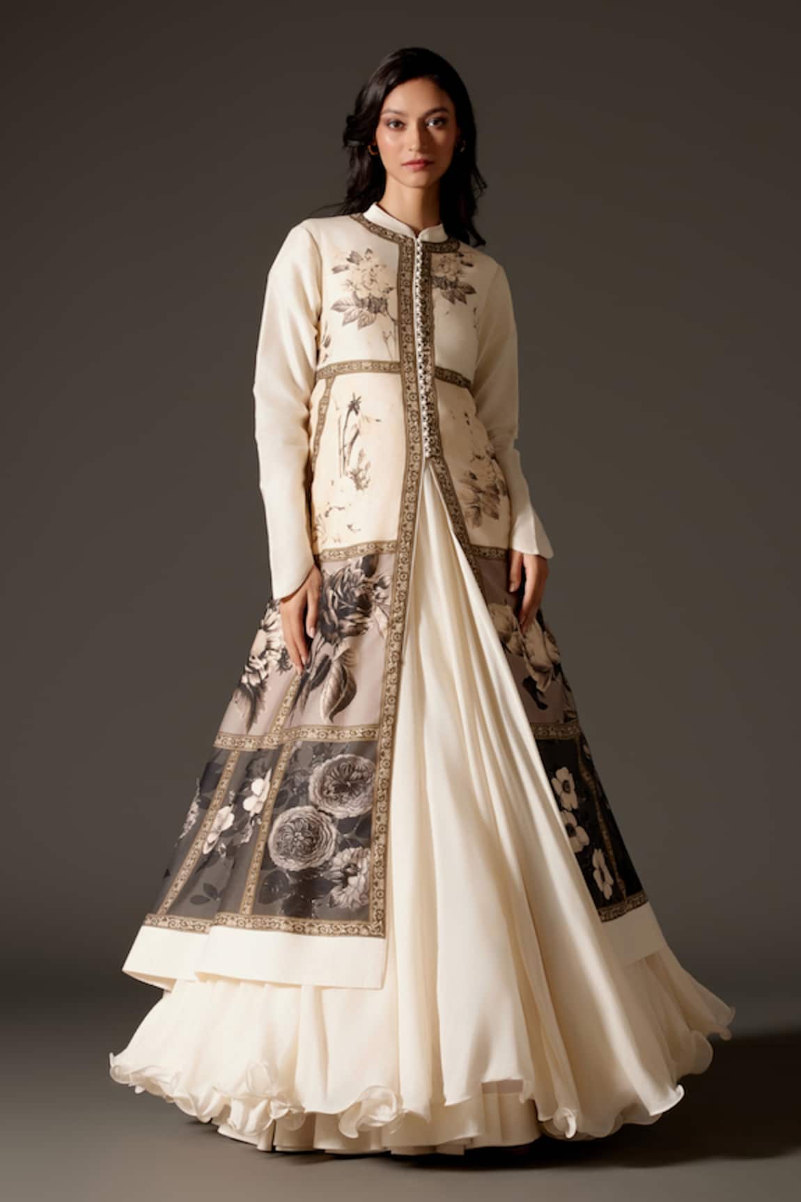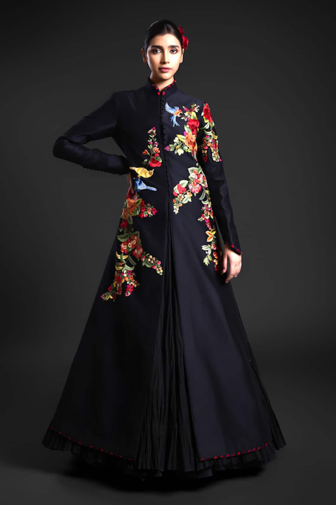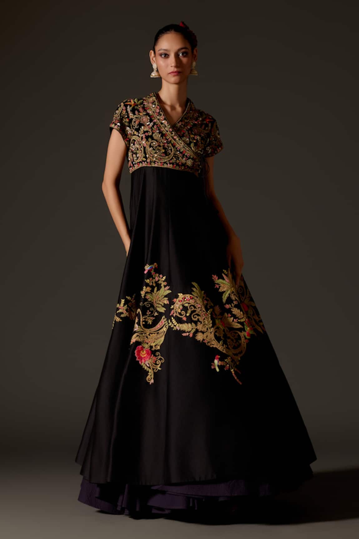 Metallic Thread Aari Embroidered Bodice Angrakha Anarkali Set