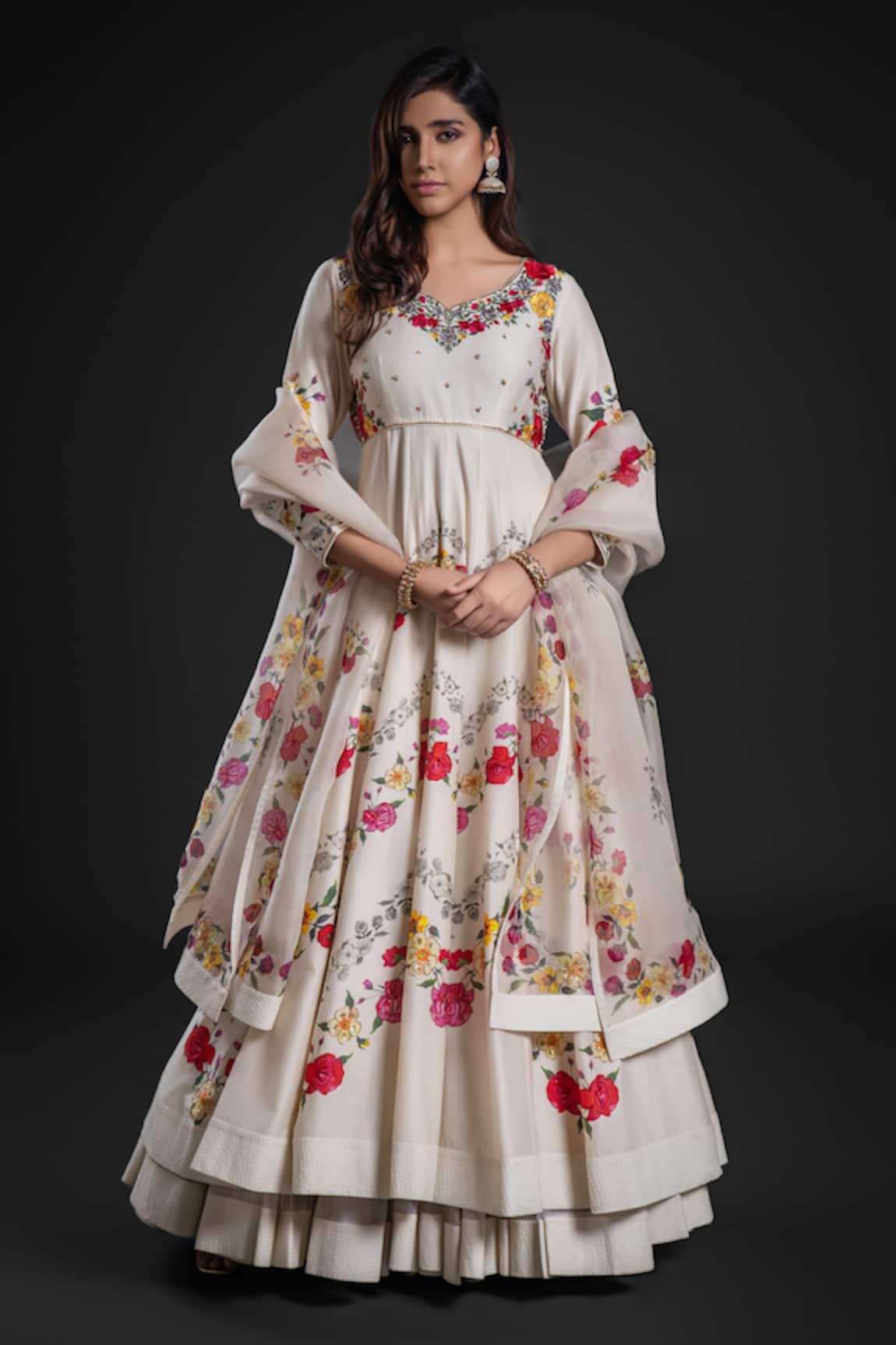 Floral Bouquet Embroidered Yoke Anarkali Churidar Set