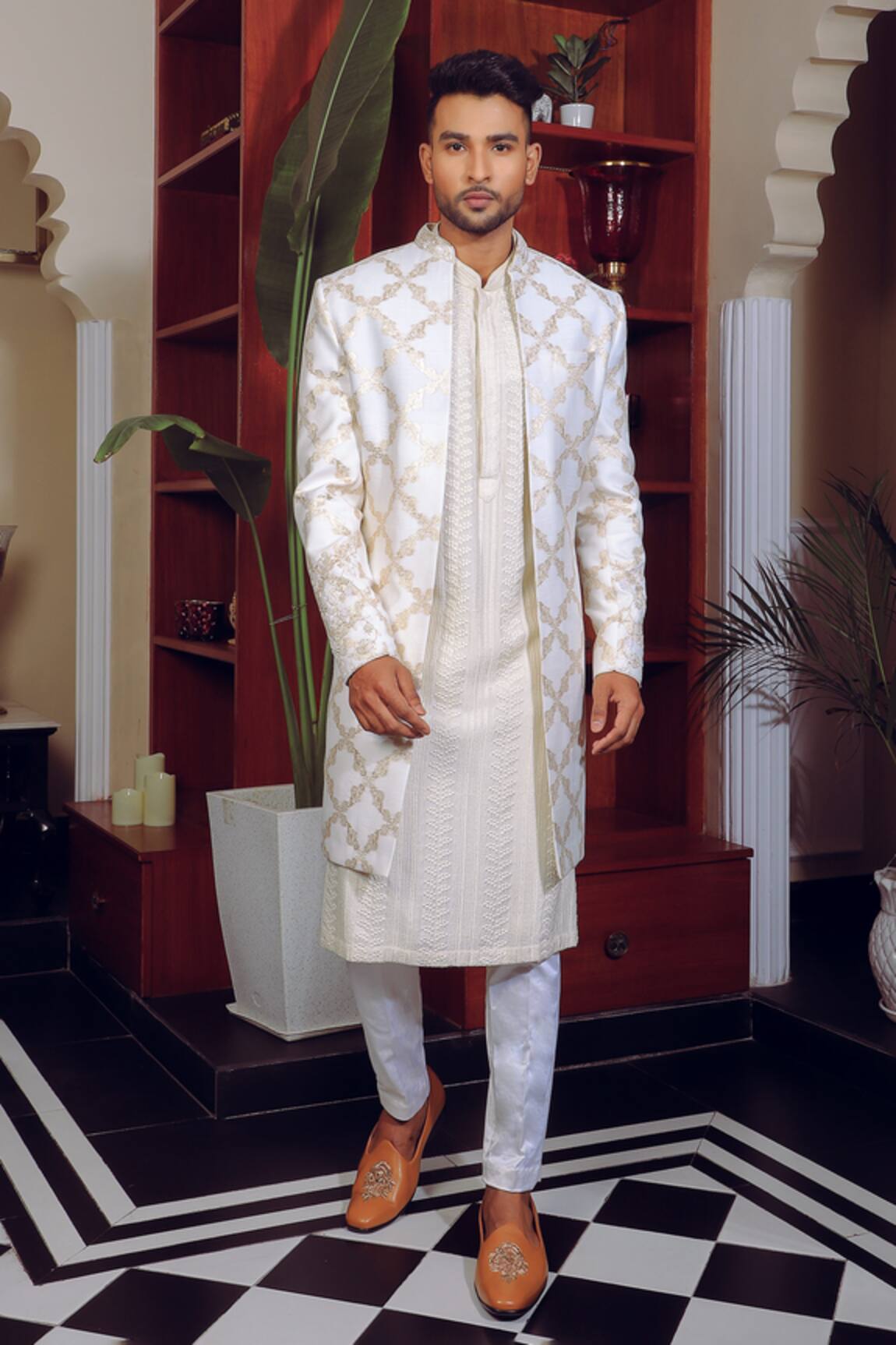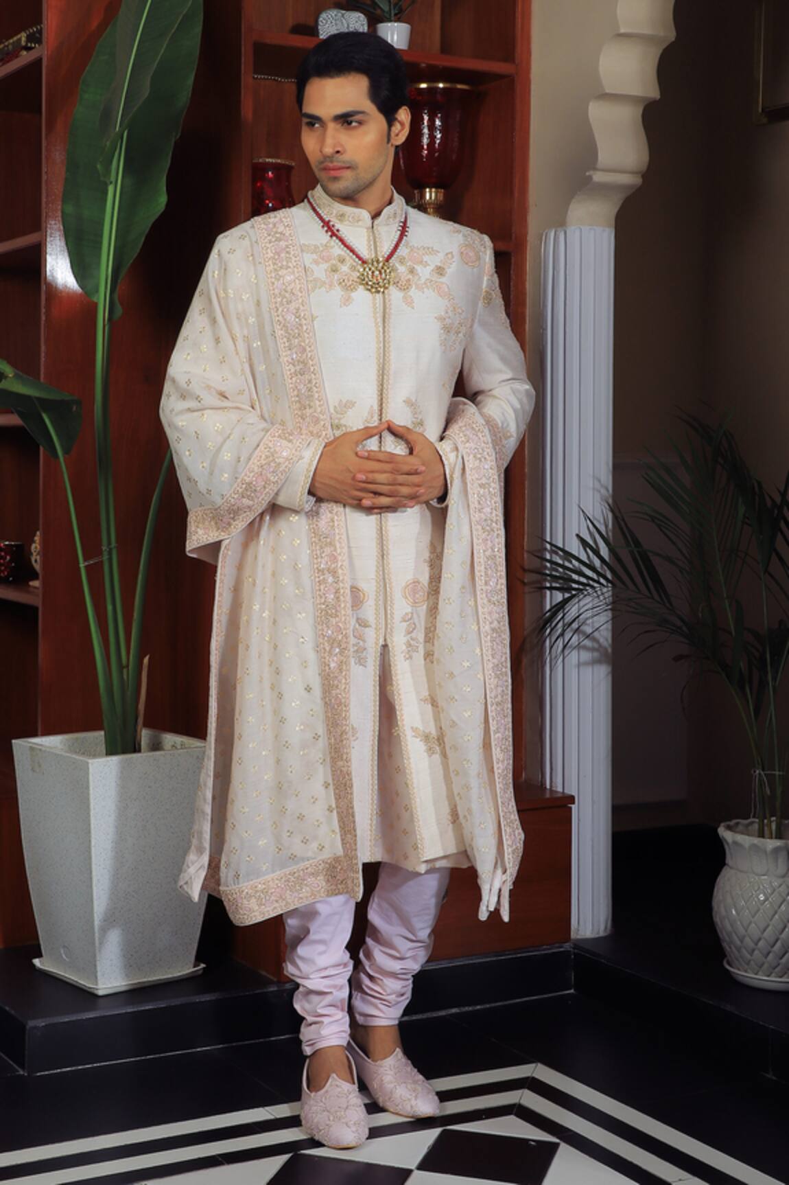 Flower Embroidered Sherwani Set
