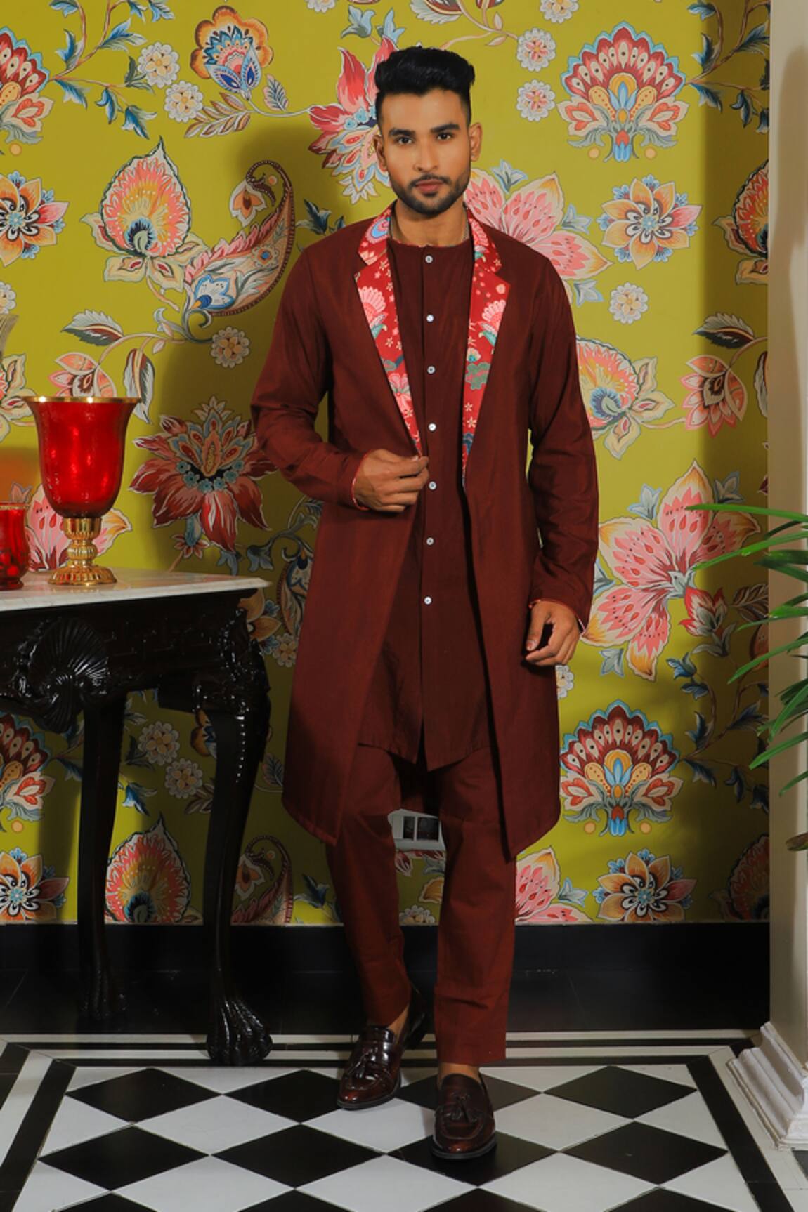 Rafflesia Bloom Print Jacket Kurta Set