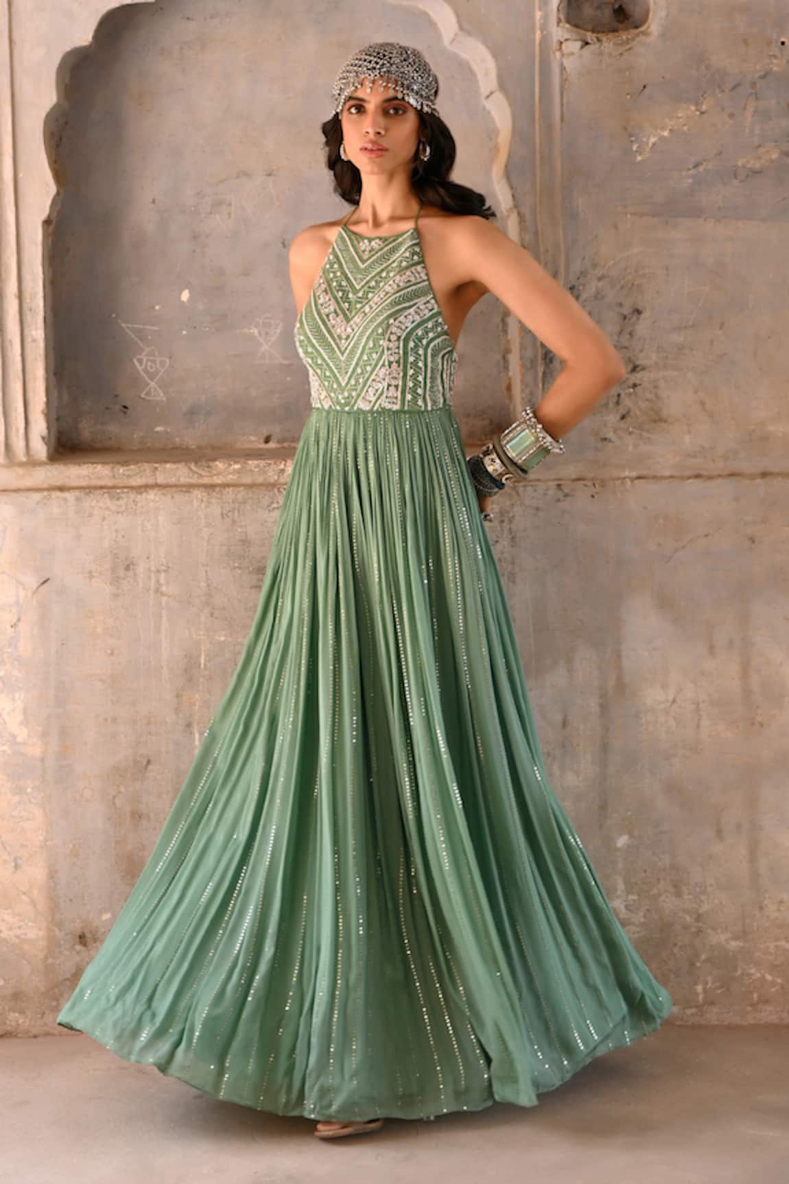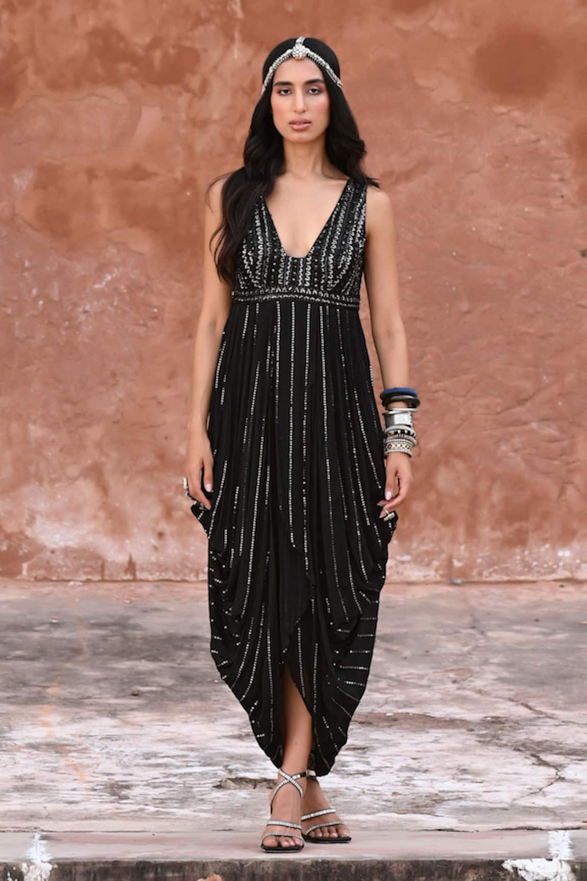 Ivy Sequin & Glass Bead Embroidered Cowl Dress