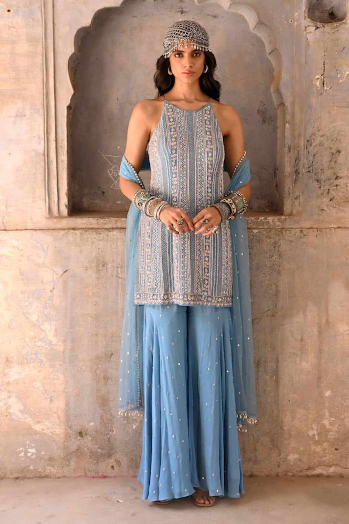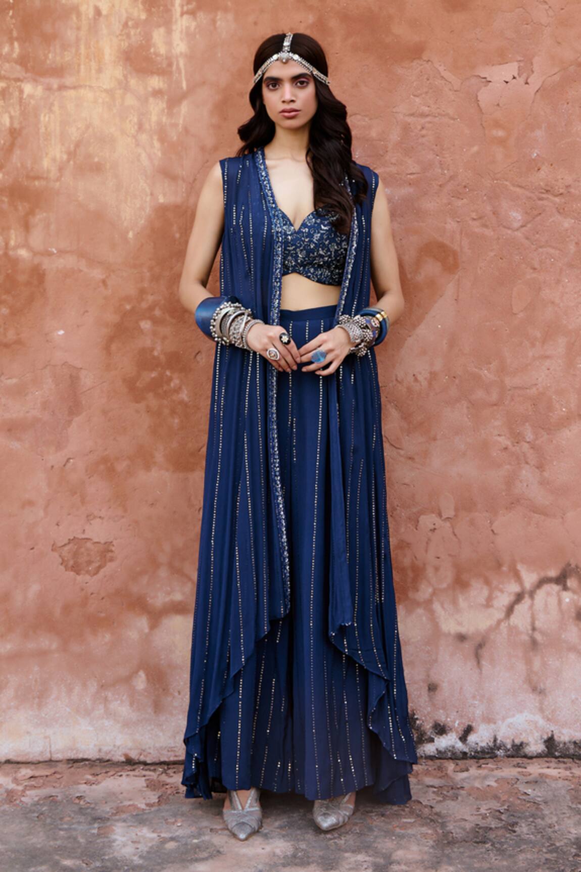 Glass Bead & Zardosi Embroidered Cape Pant Set