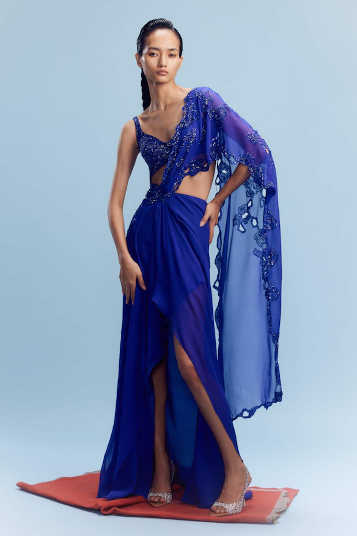 Basma Bead Embellished Cut-Out Cape Slit Skirt Set