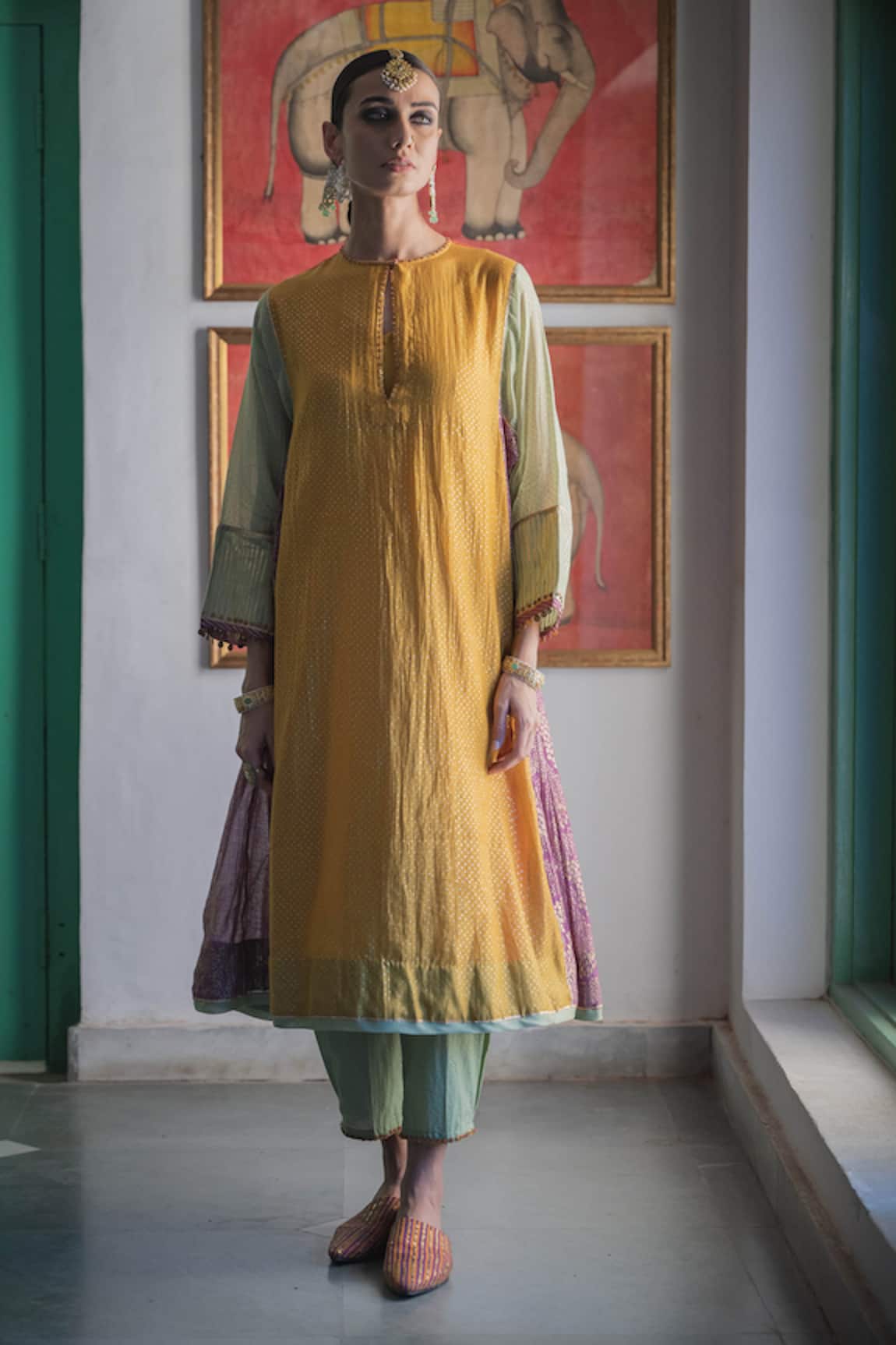 Heer Gota Trimmed Self Striped Kurta With Slip