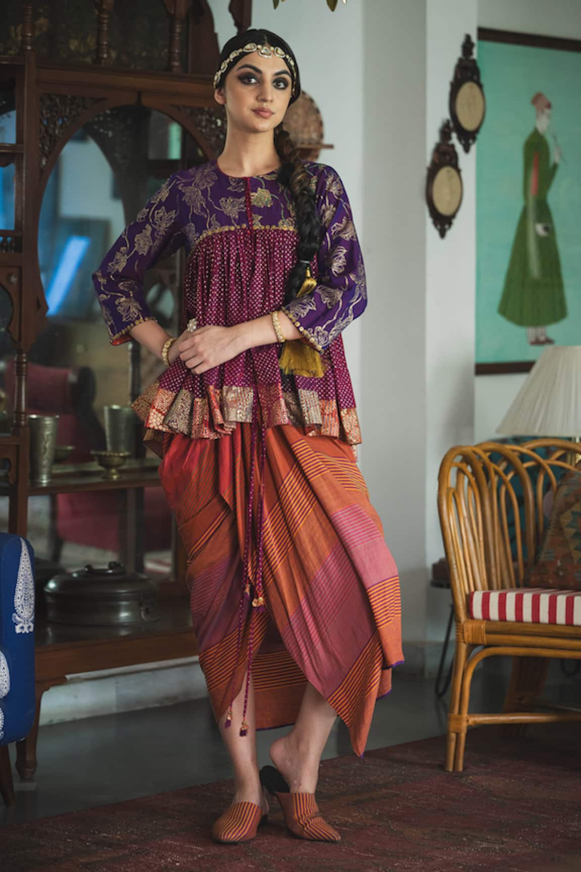 Jaafi Handwoven Chanderi Printed Anarkali Set
