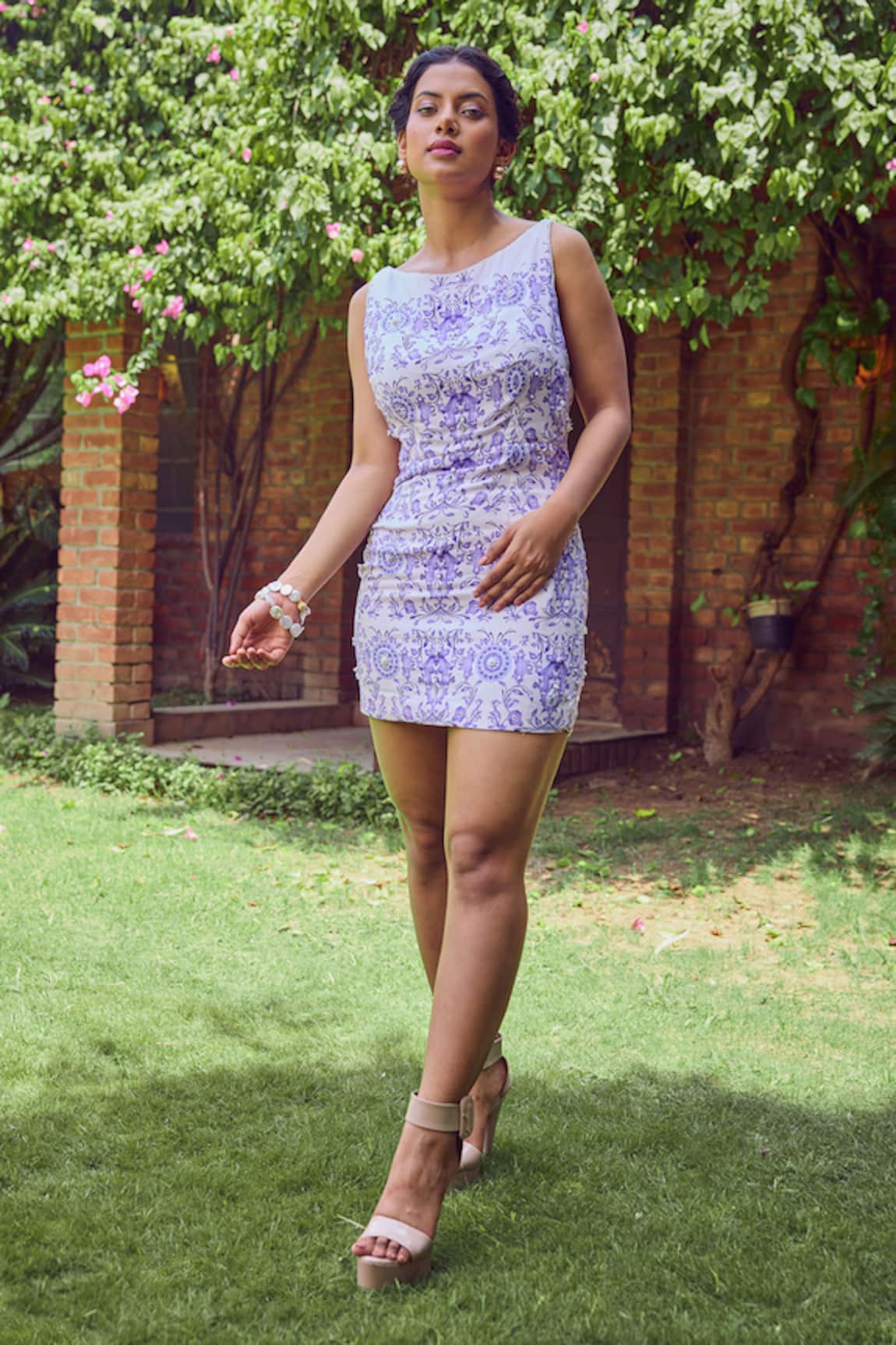 Basil Breeze Front Cut Pattern Embroidered Dress