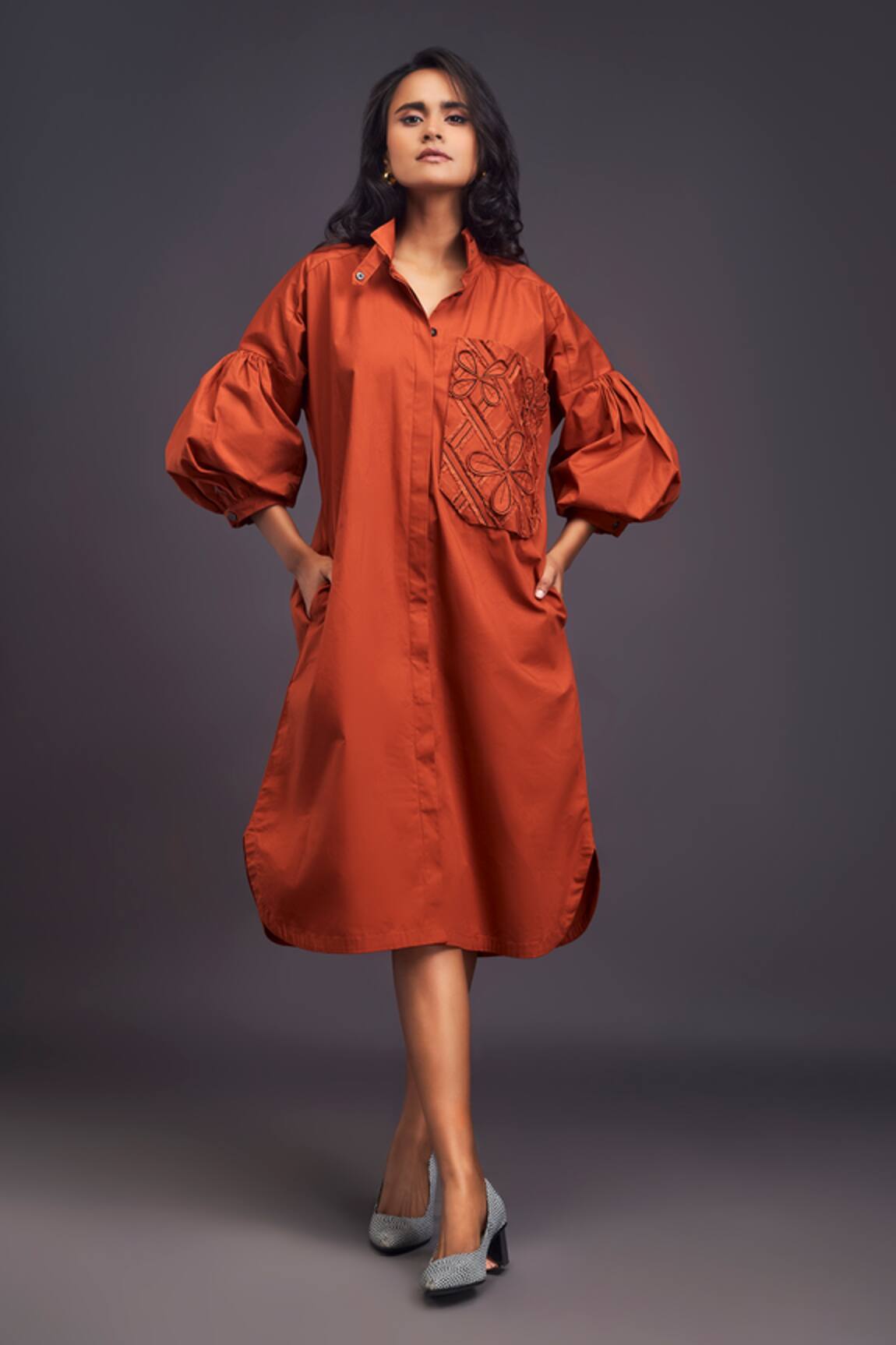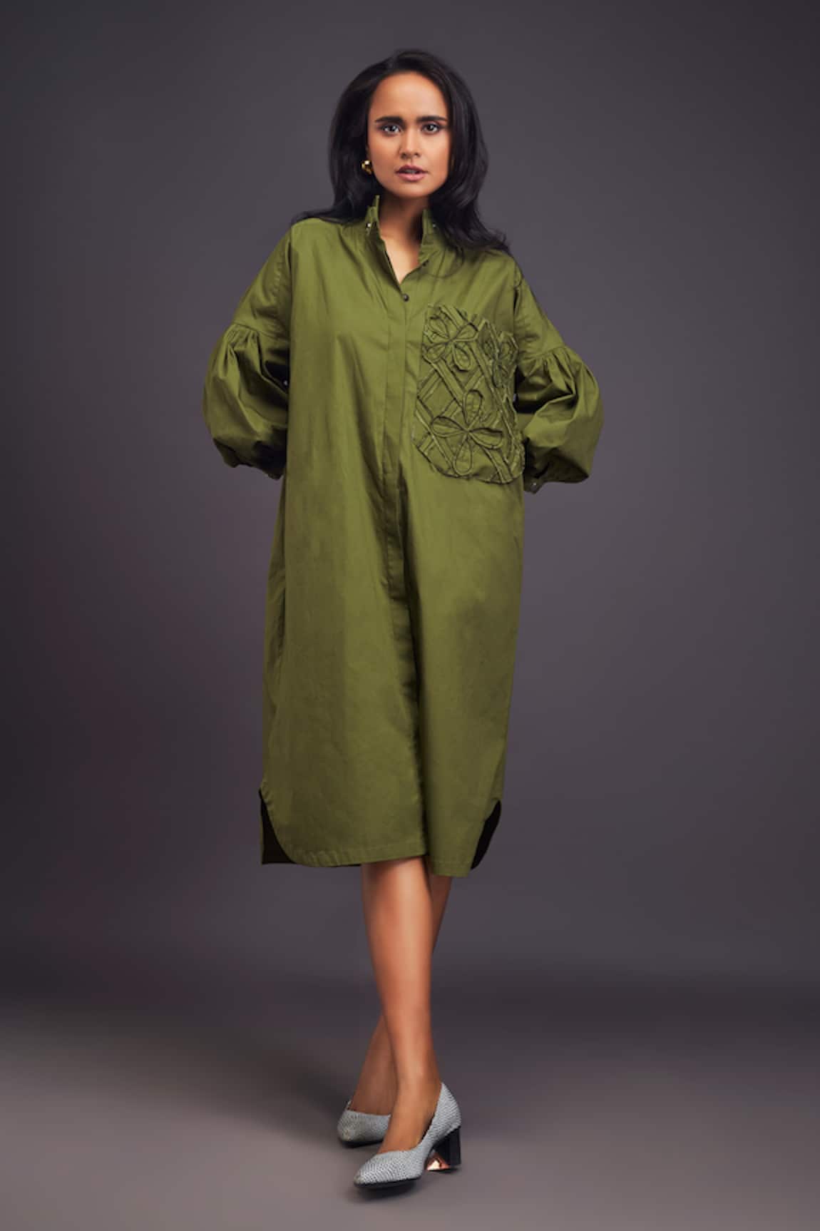 Shirt Dress With Flower Applique Detailed Corset Belt