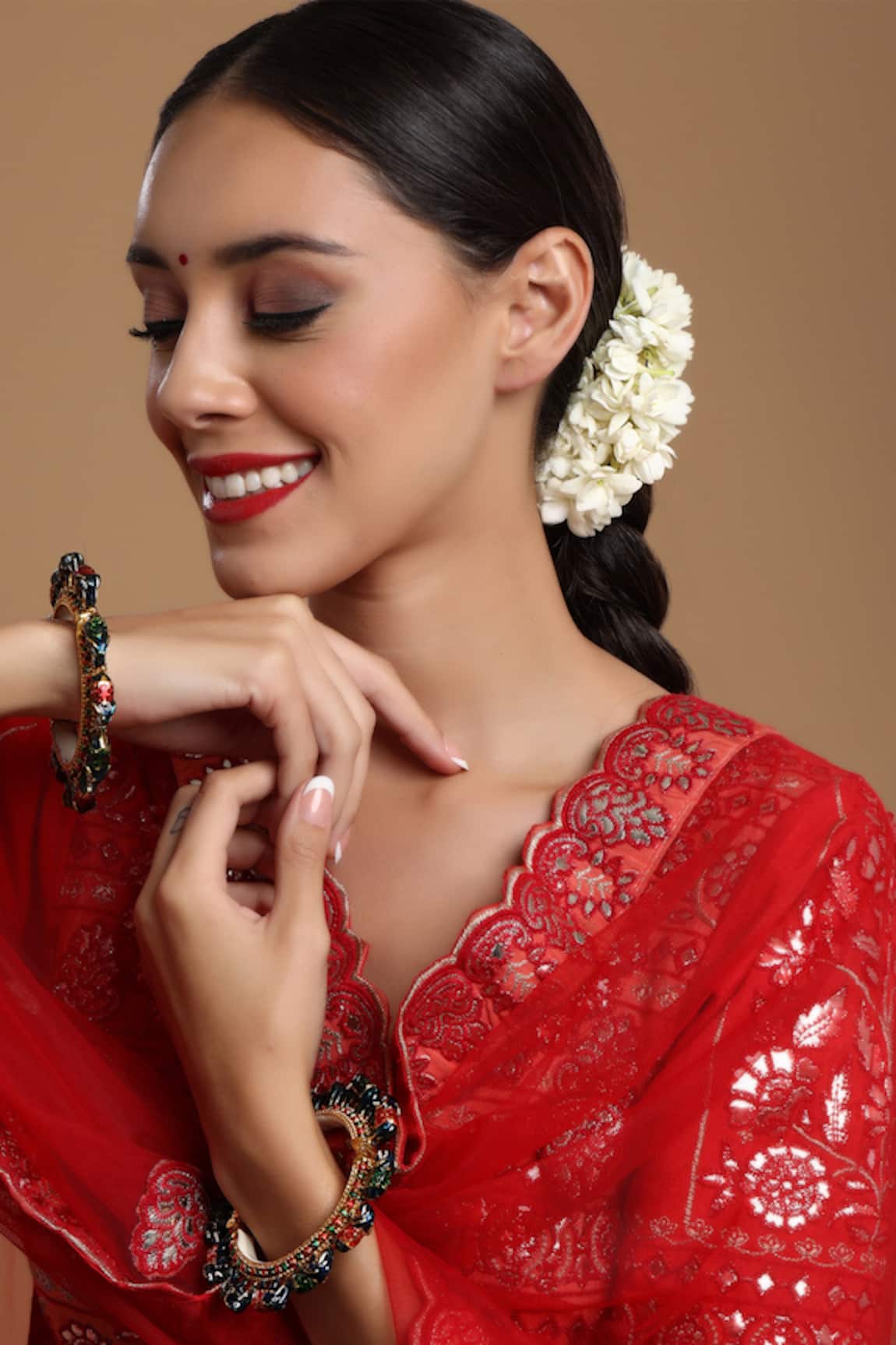 Meenakari Work Kundan & Pearl Embellished Bangles - Set of 2