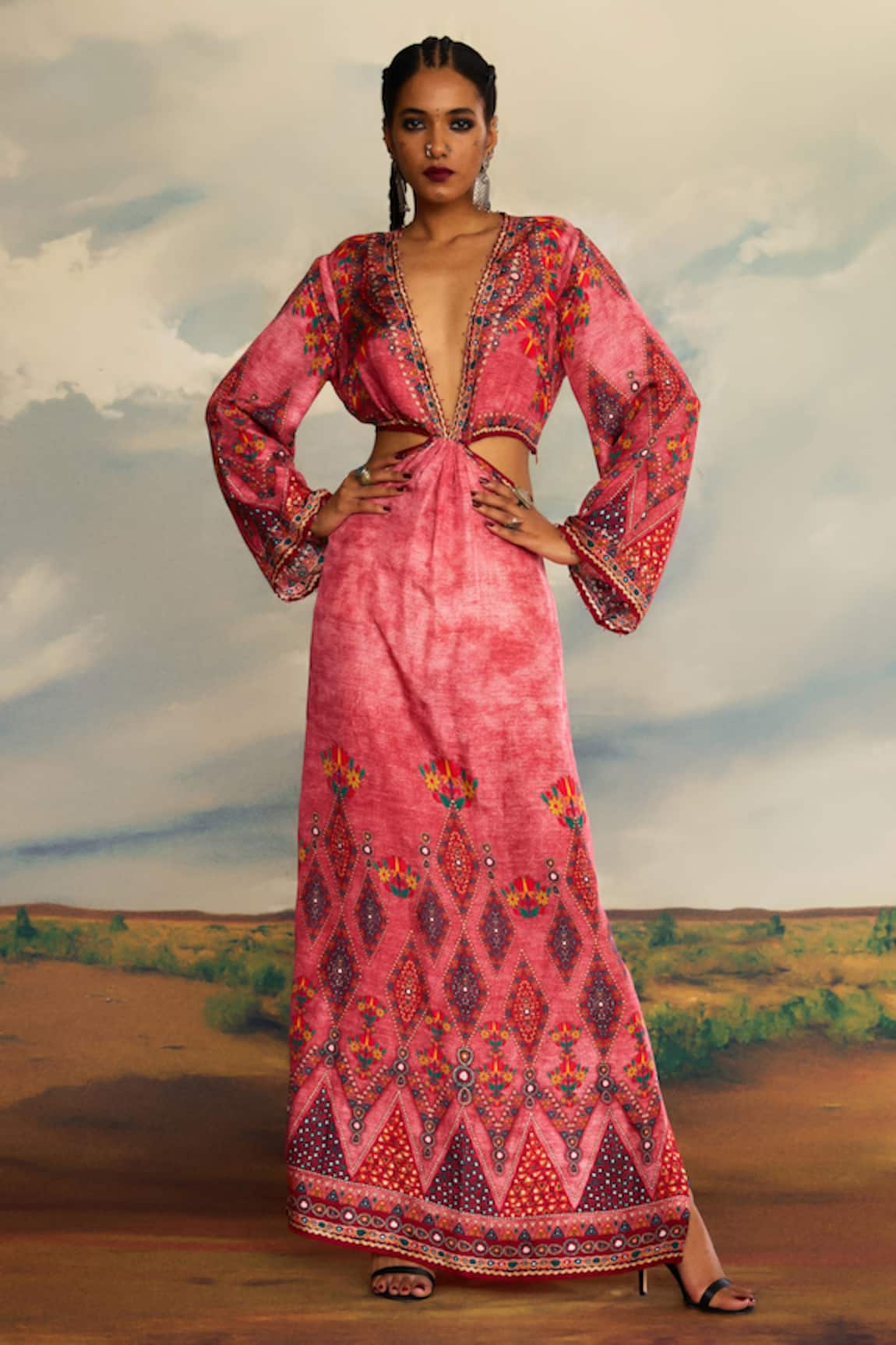 Rasika Maya Bloom Print & Embroidered Kaftan