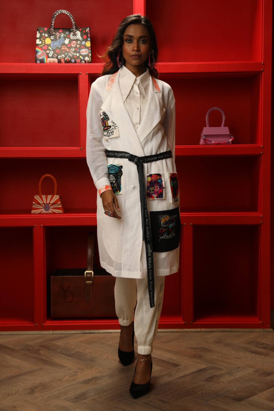 Abstract Hand Painted Trench Jacket With Jogger Set