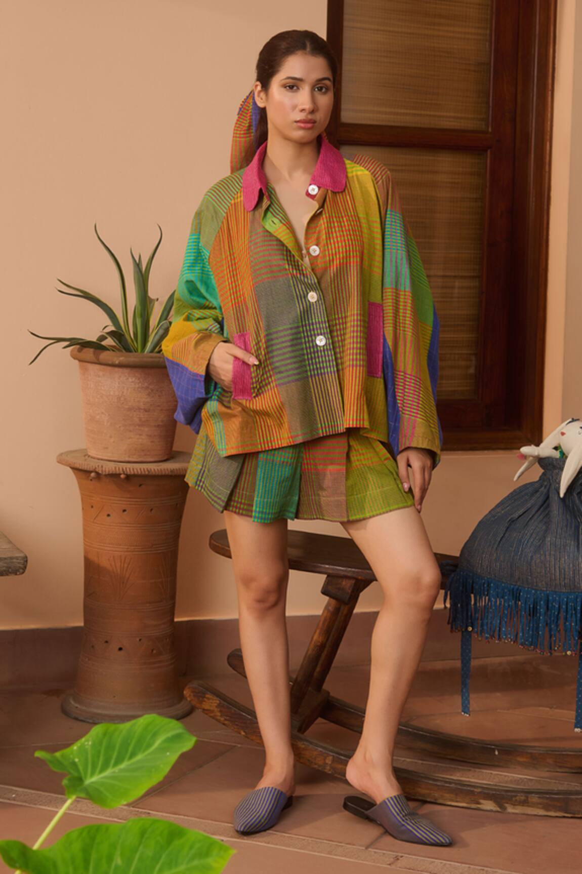 Delta Stripe Patchwork Woven Shirt & Skirt
