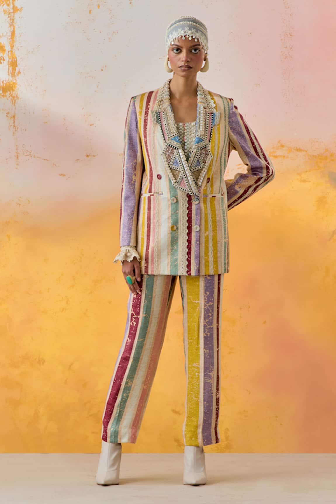 Noori Mother Of Pearl Embroidered Blazer Trouser Set