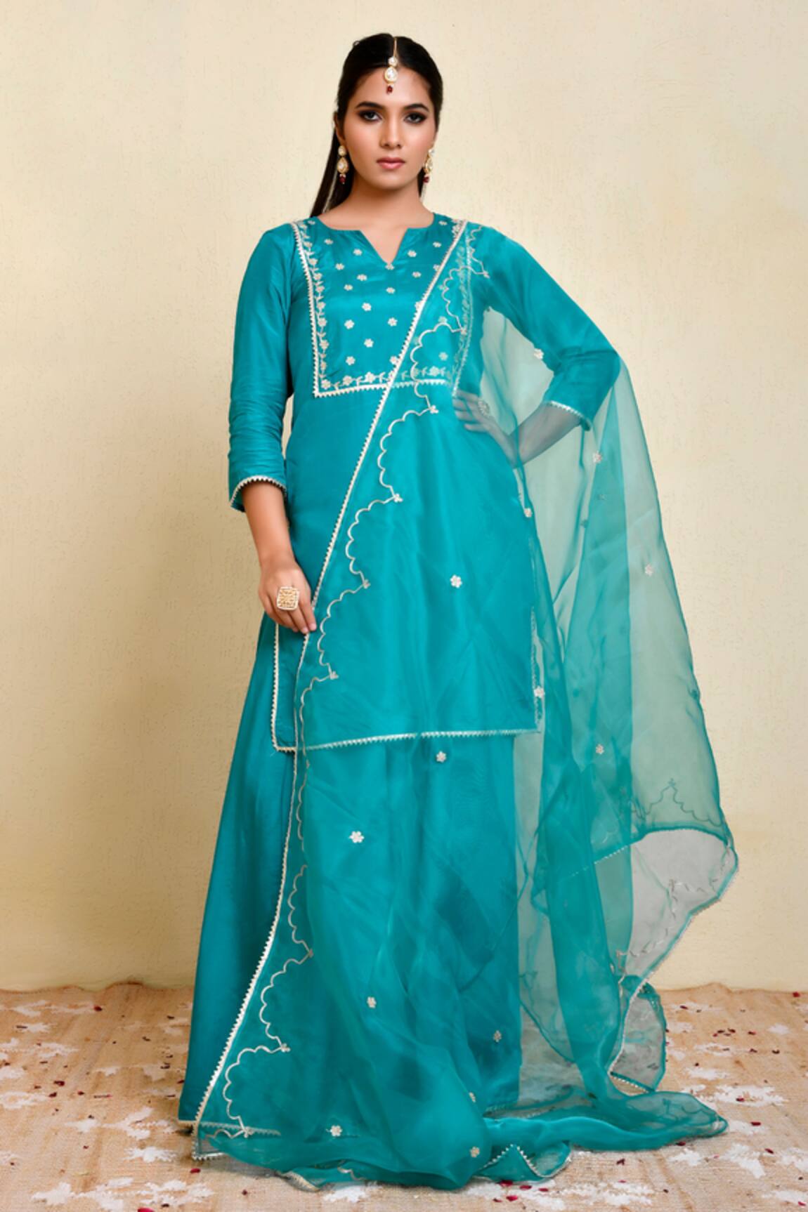 Floral Aari Detailed Kurta Sharara Set