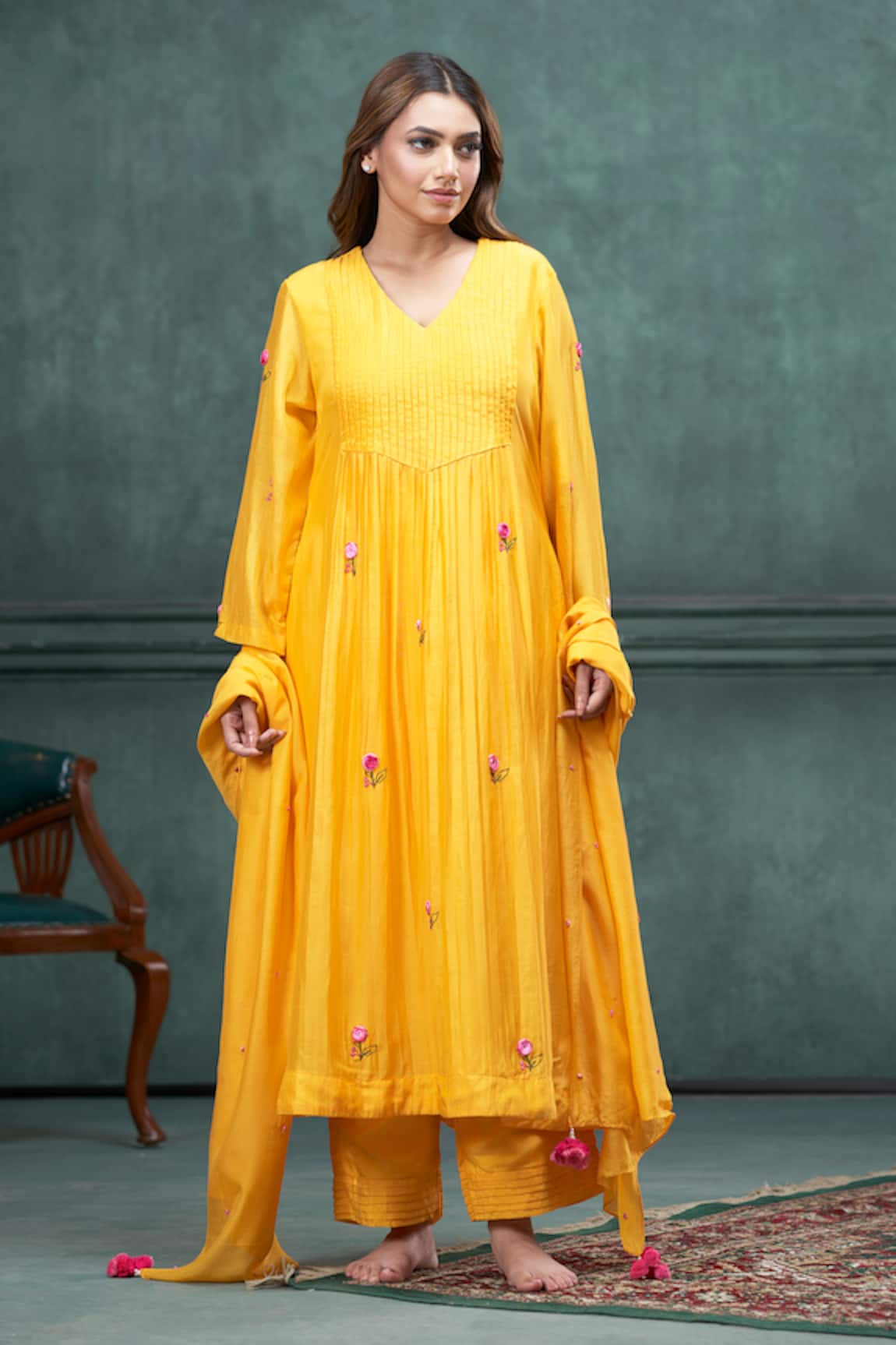 3D Flower Hand Embroidered A-line Kurta Pant Set