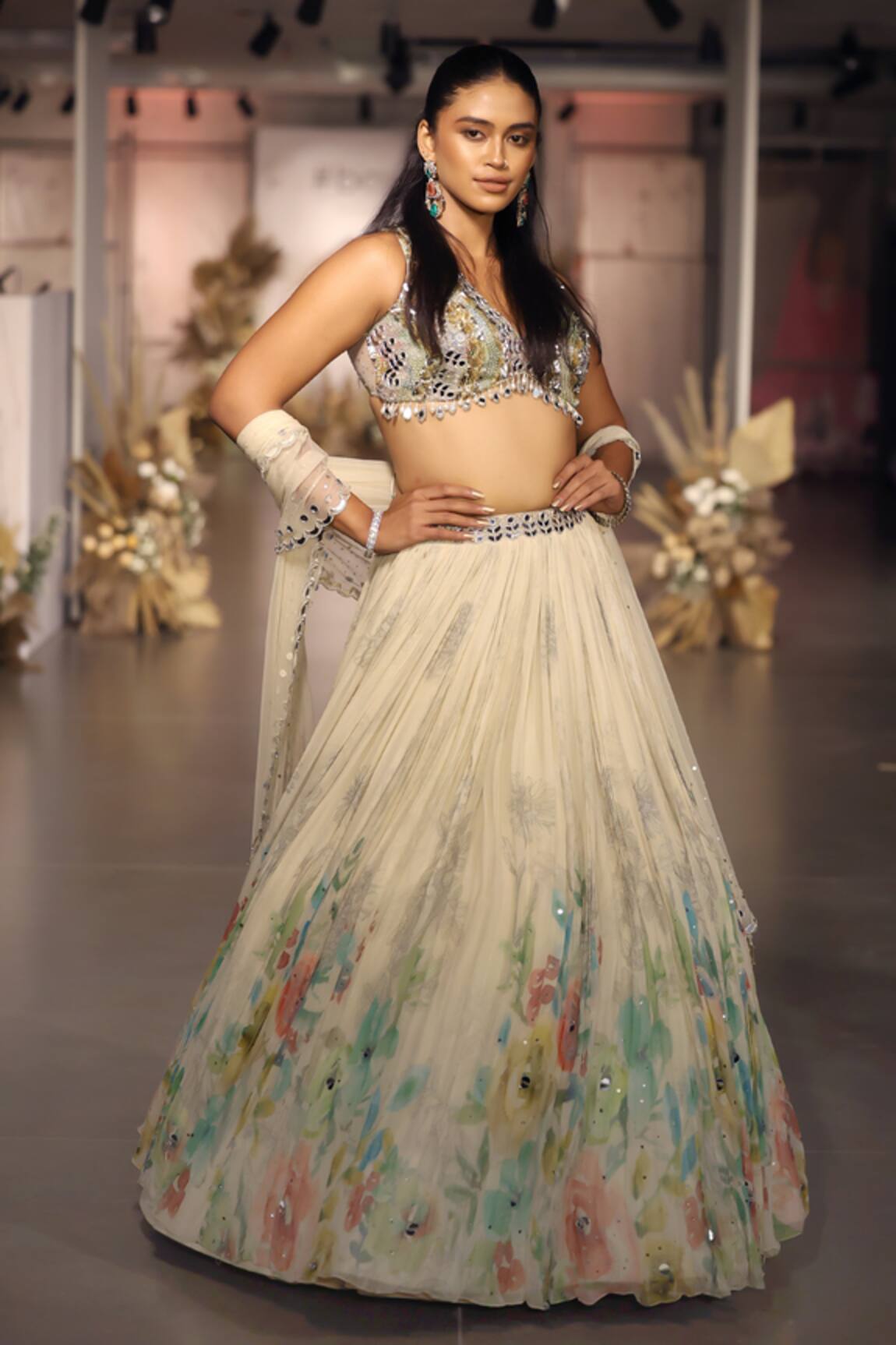 Floral Embellished Off White Lehenga Set