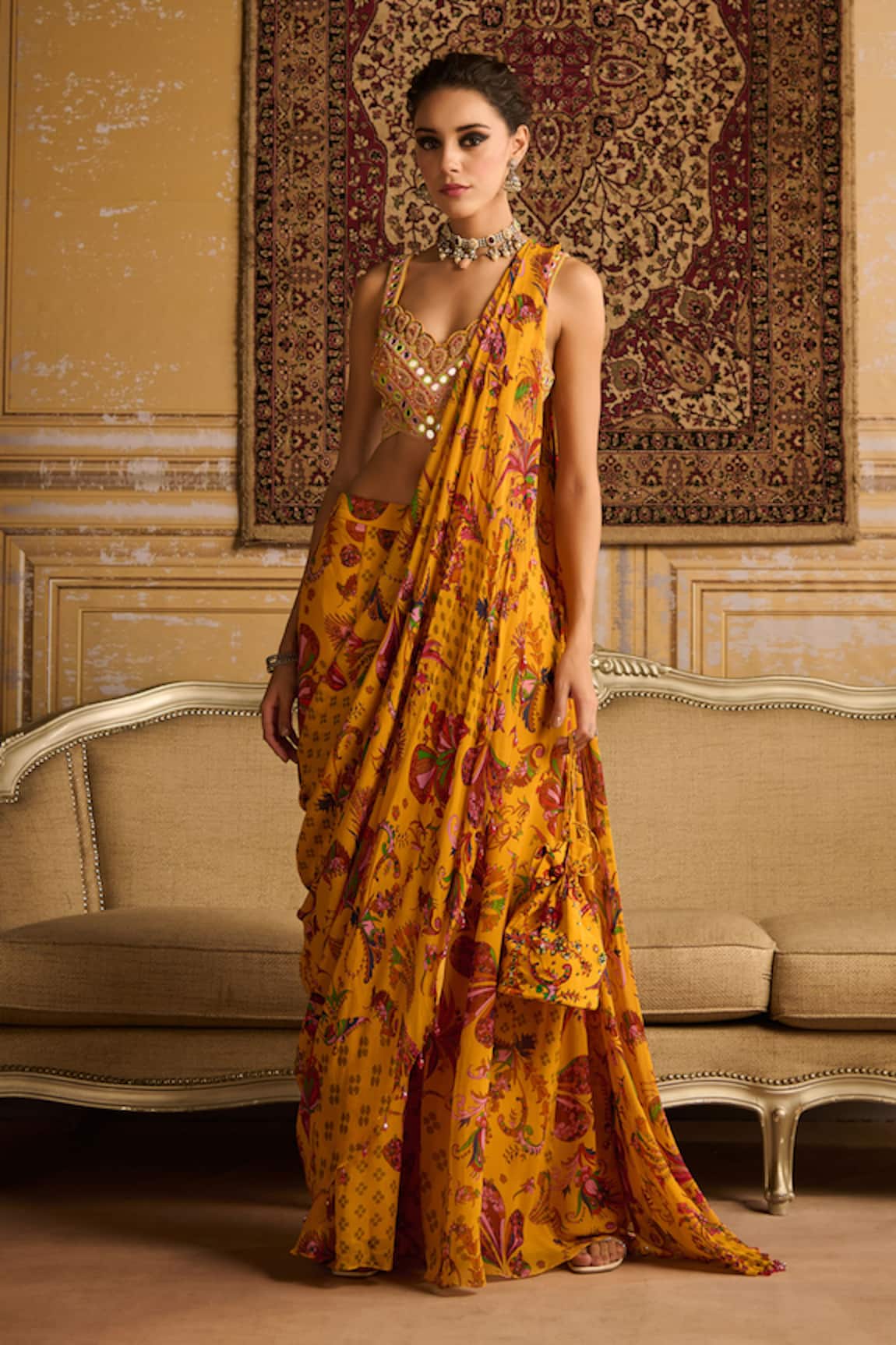 Folklore Bloom Print Pre Draped Skirt Saree With Blouse