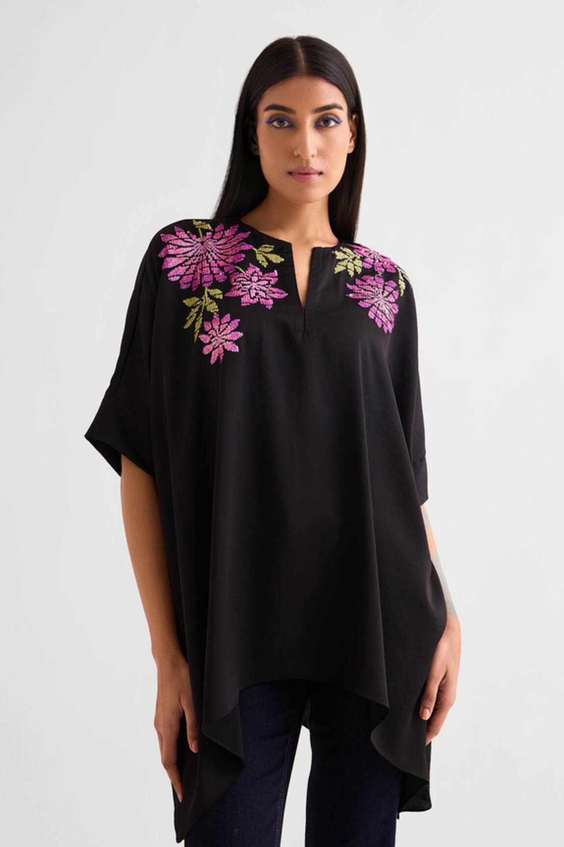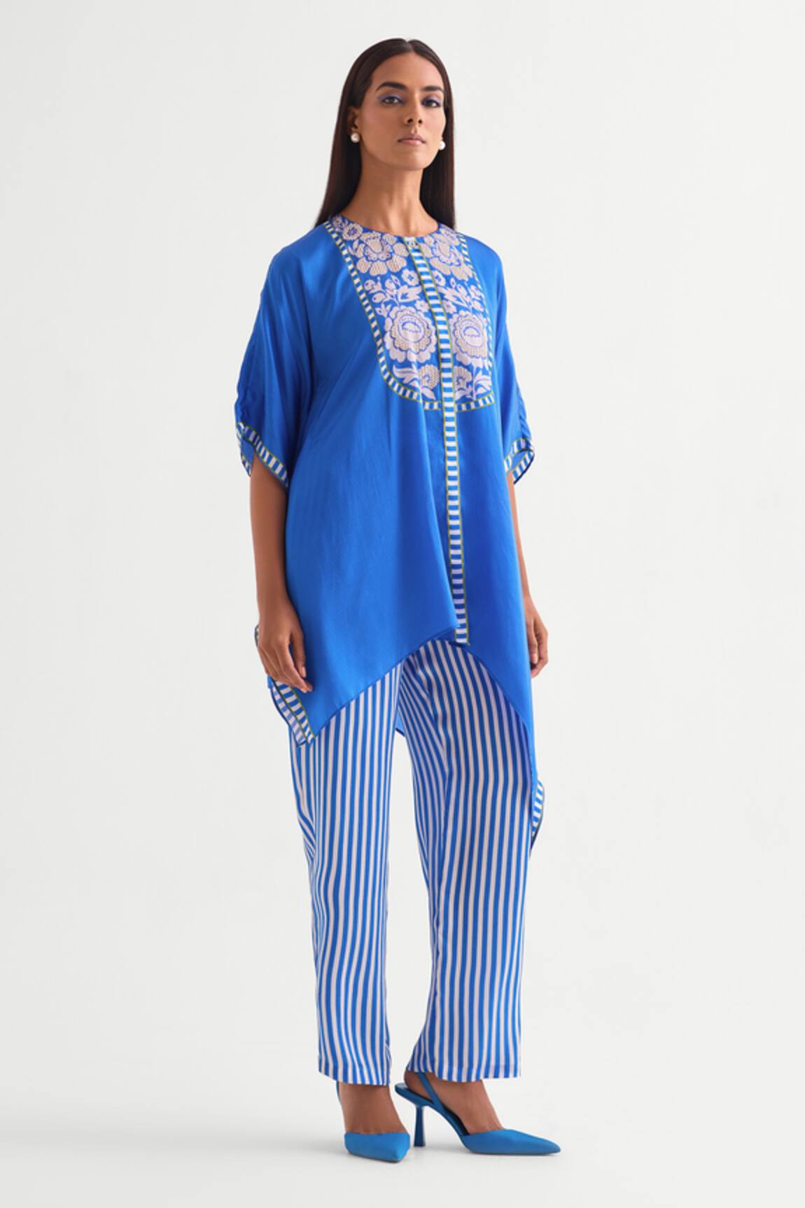 Asymmetric Floret Embroidered Tunic & Pant Set