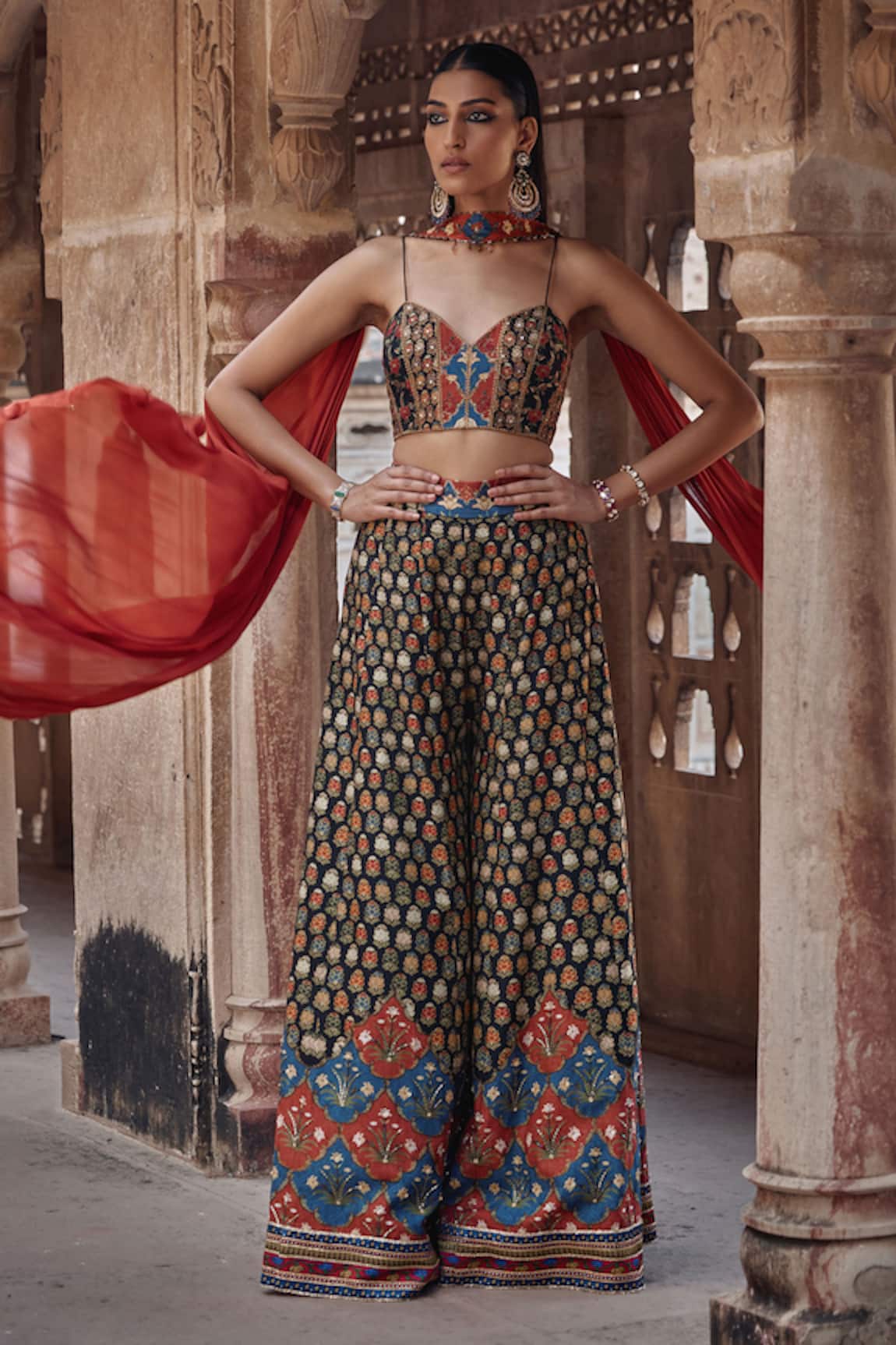 Aarna Mughal Bloom Print & Embroidered Saree With Blouse