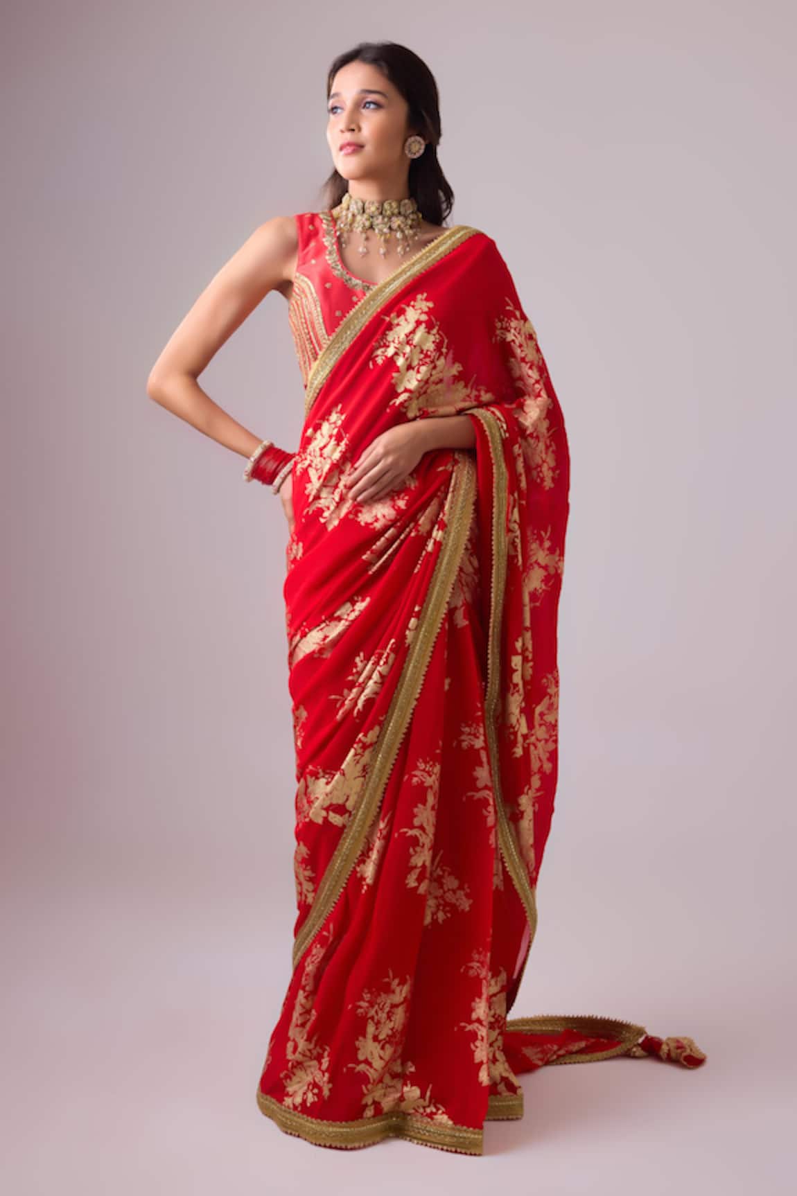 Gota Embroidered Dhoti Pant Saree With Blouse