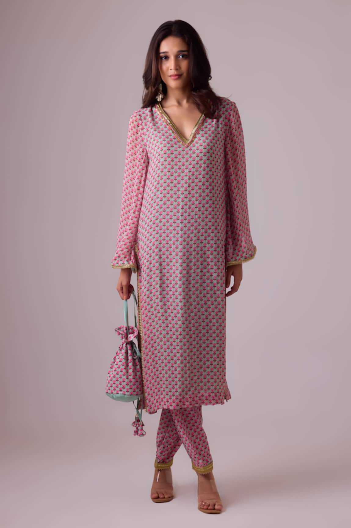 Floral Print Asymmetric Kurta Dhoti Pant Set