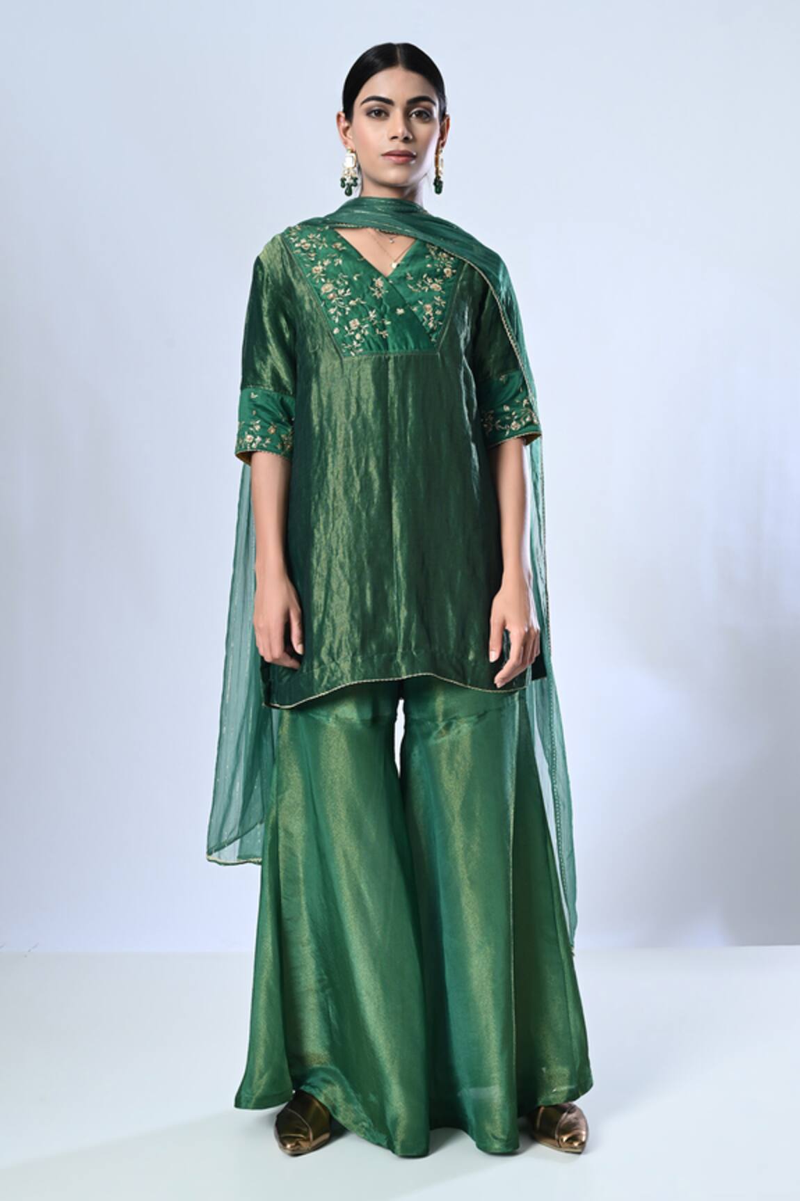 5cross Ajit Kumar Floral Embroidered Short Kurta Palazzo Set