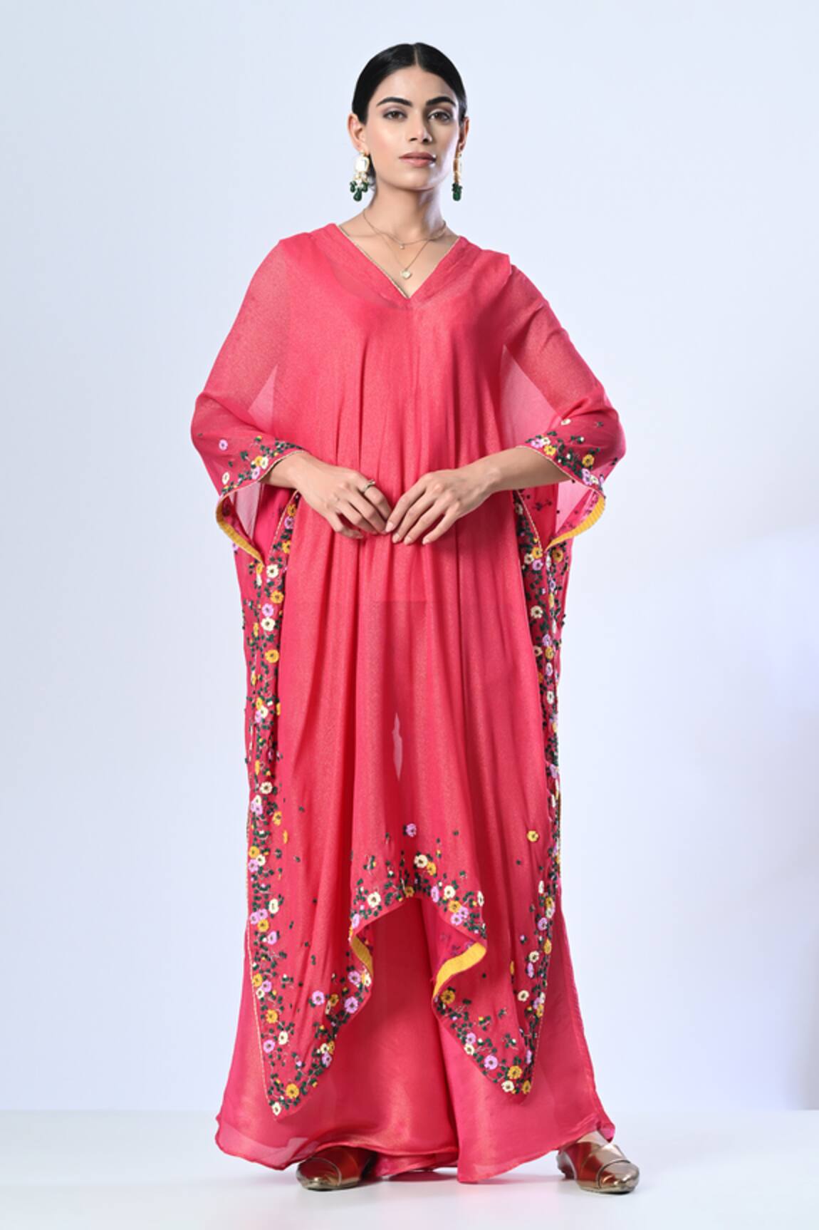 5cross Ajit Kumar Floral Print Scalloped Kaftan Pant Set