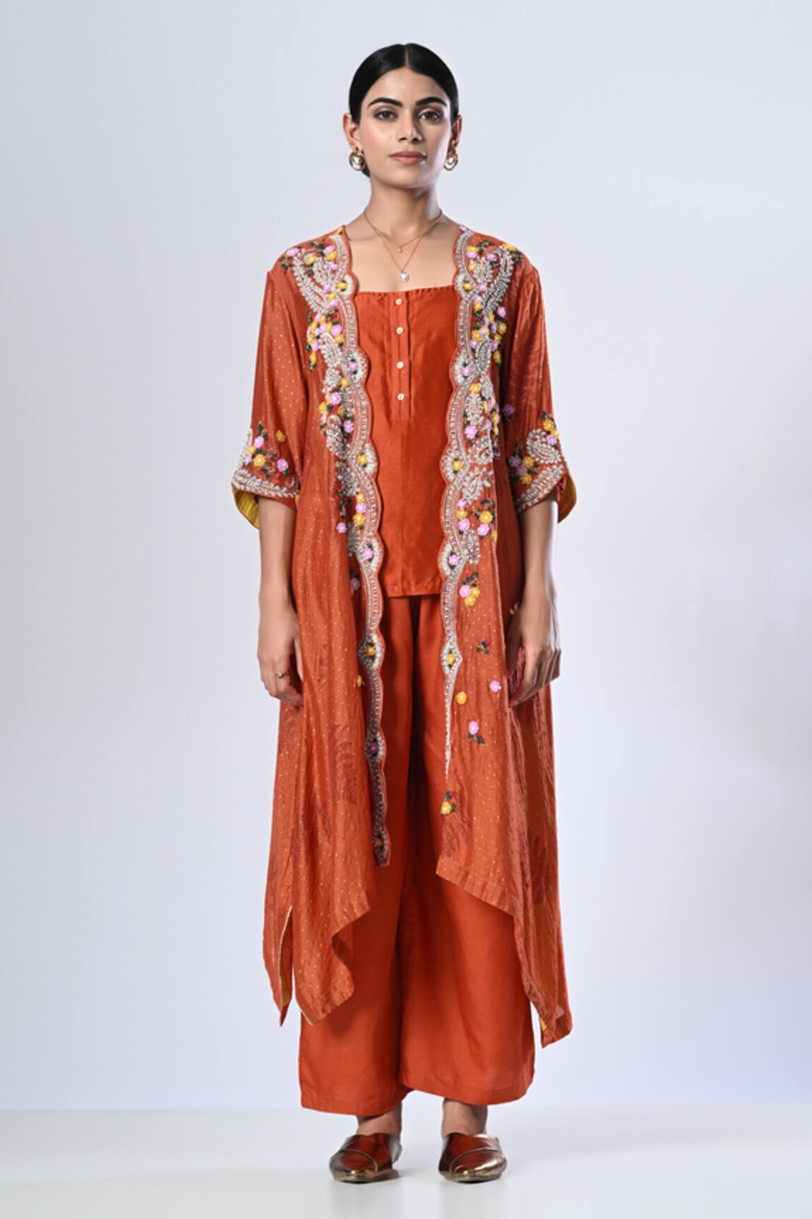 5cross Ajit Kumar Scallop Floral Embroidered Jacket Palazzo Set