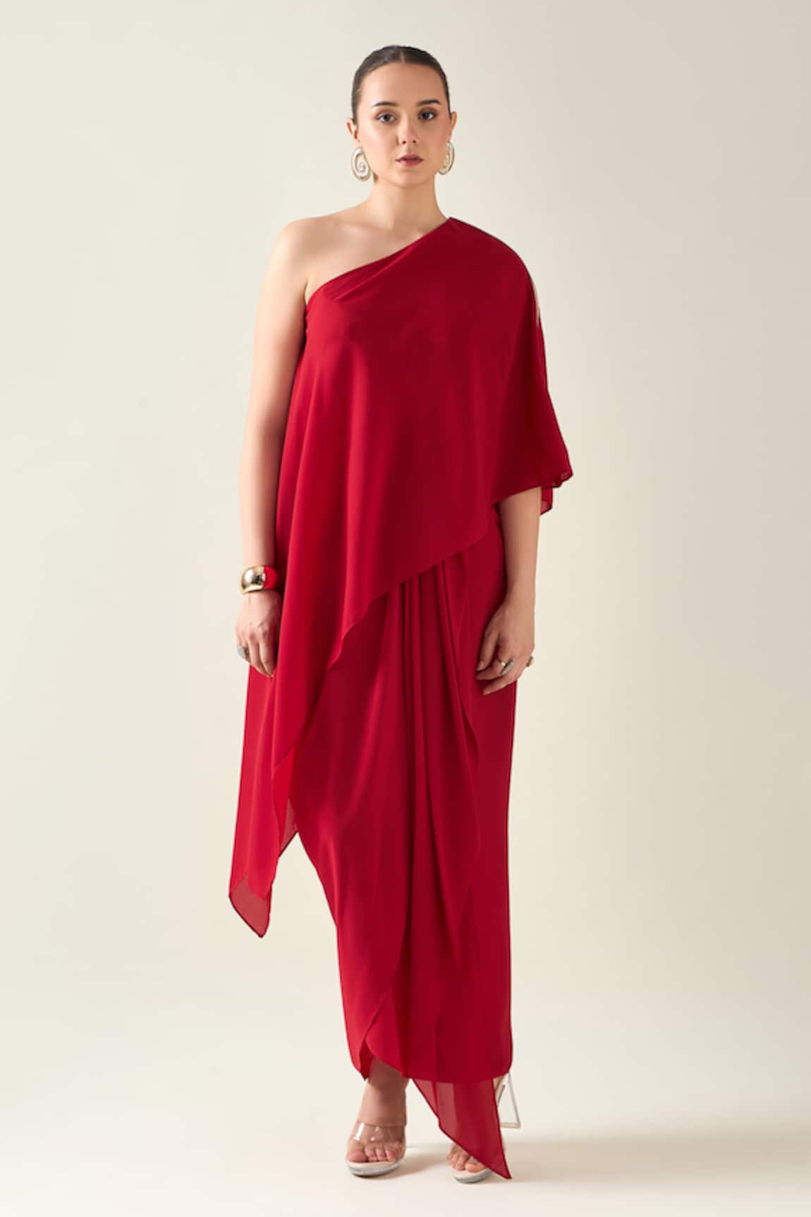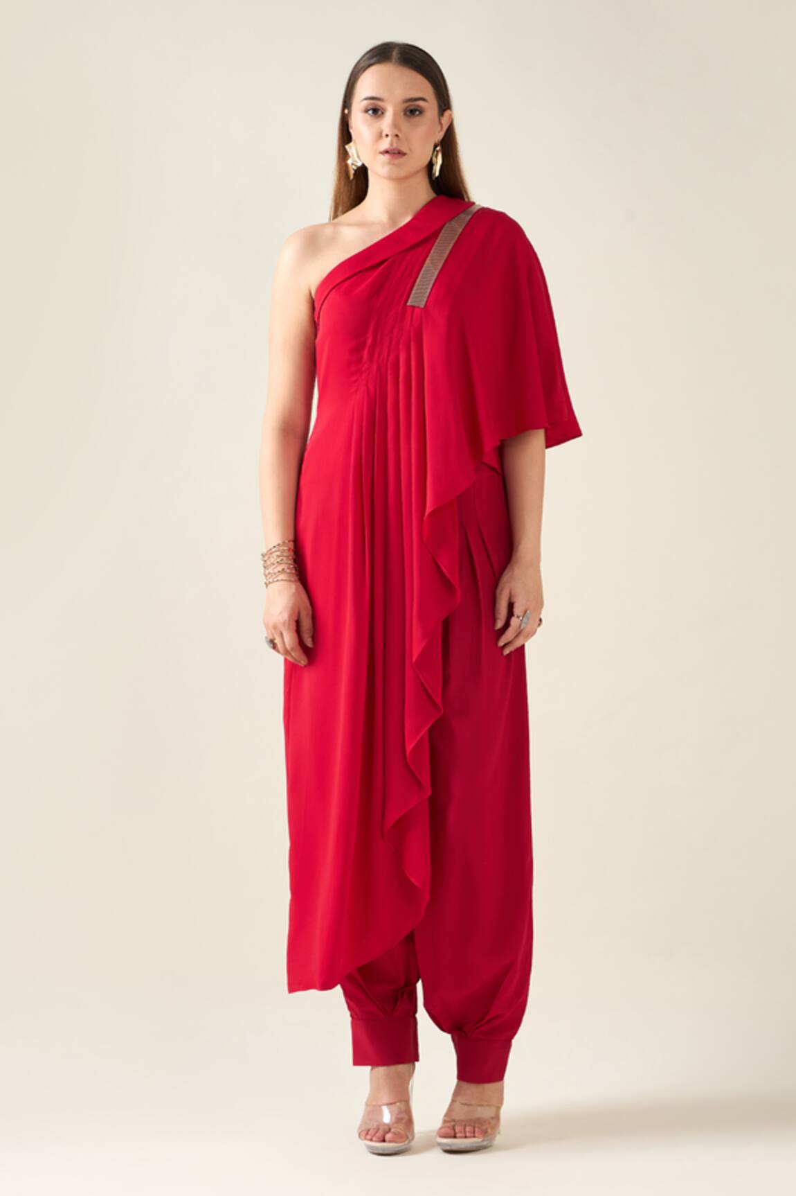 Embroidered One-Shoulder Tunic With Draped Pant