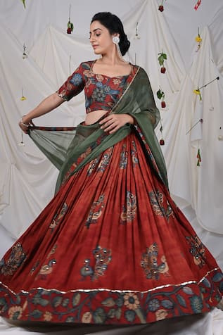 Hand Painted Kalamkari Pattern Lehenga & Blouse Set
