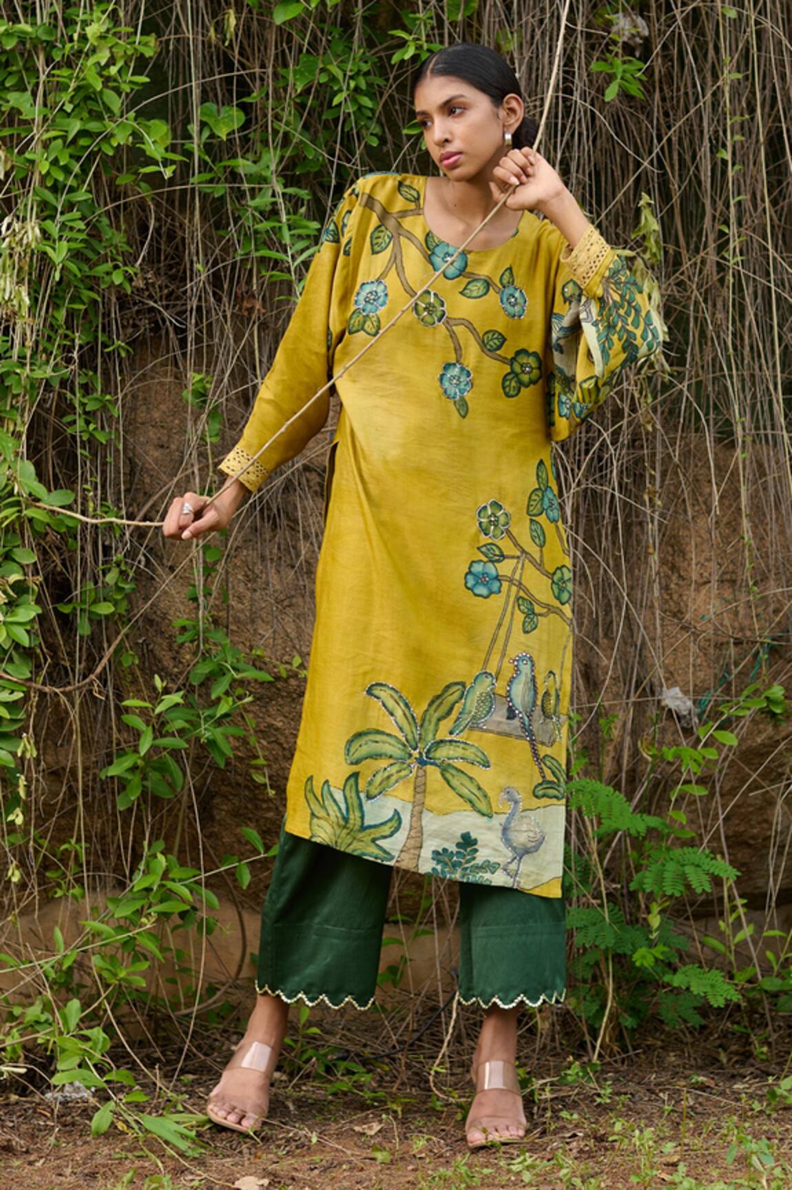 Peacock Kalamkari Pattern Anarkali Pant Set
