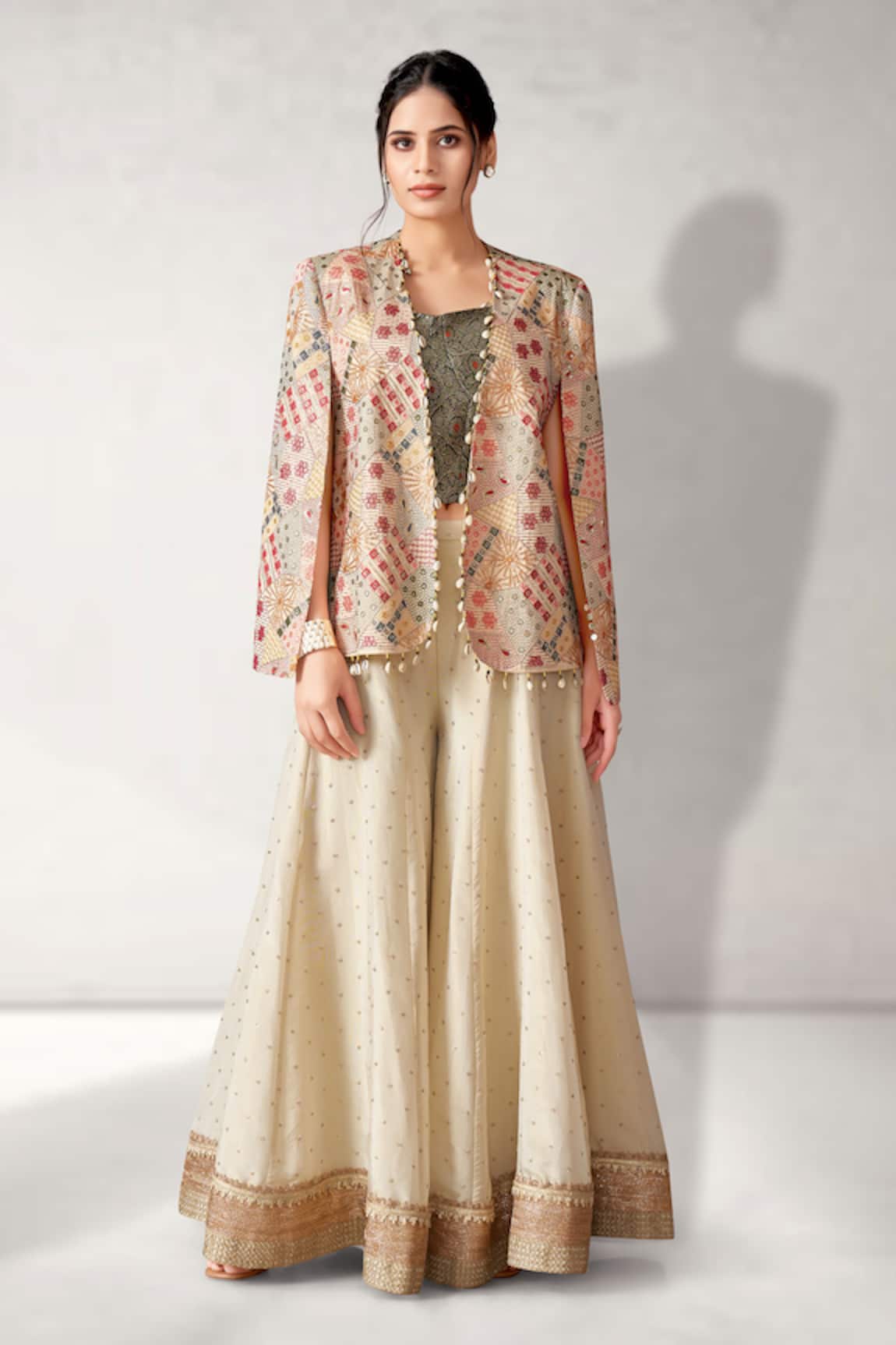 Triangle Cut Embroidered Cape & Dhoti Pant Set