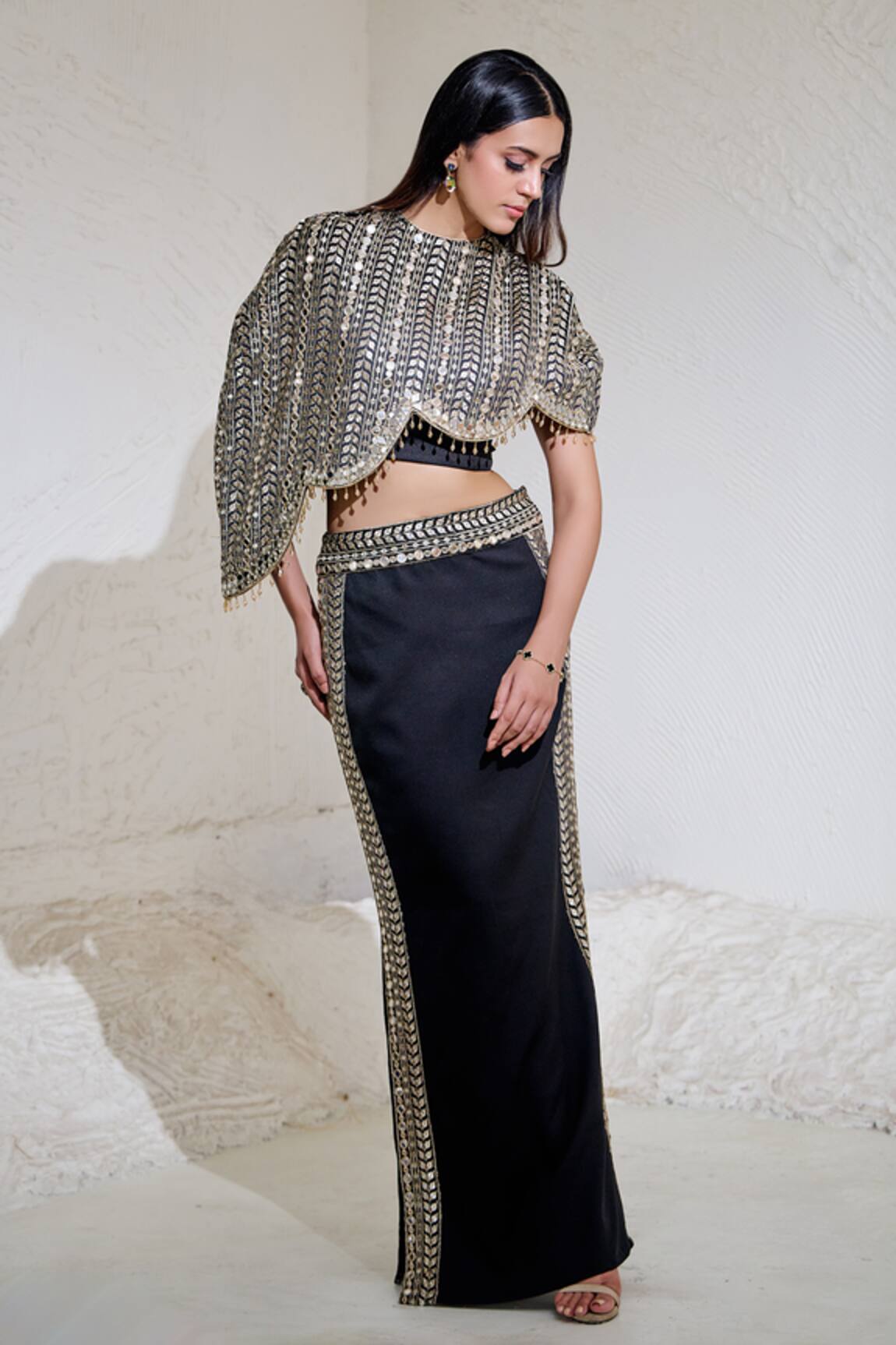 Adira Embroidered Cape & Skirt Set