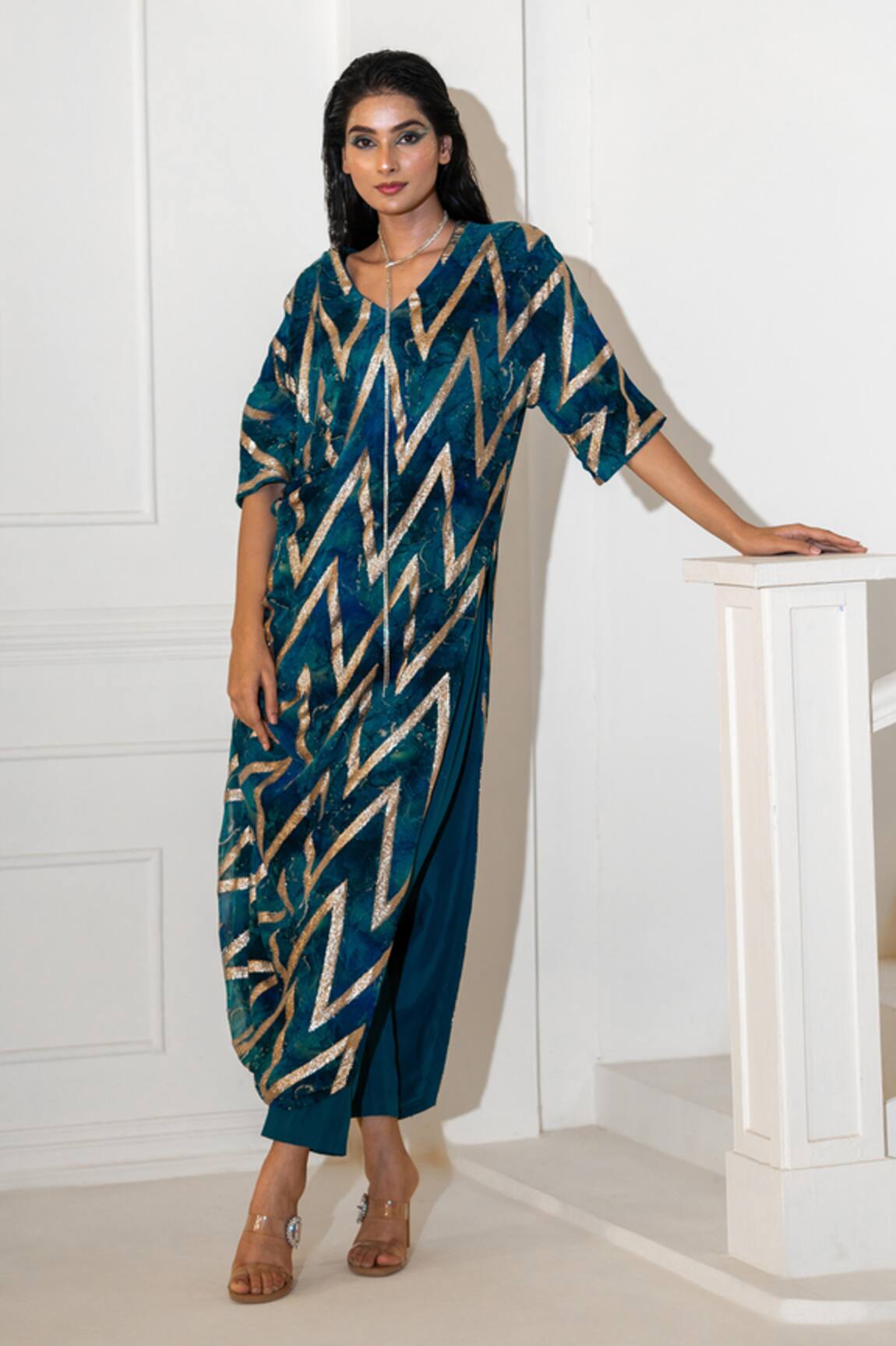 Chevron Embroidered Draped Dress