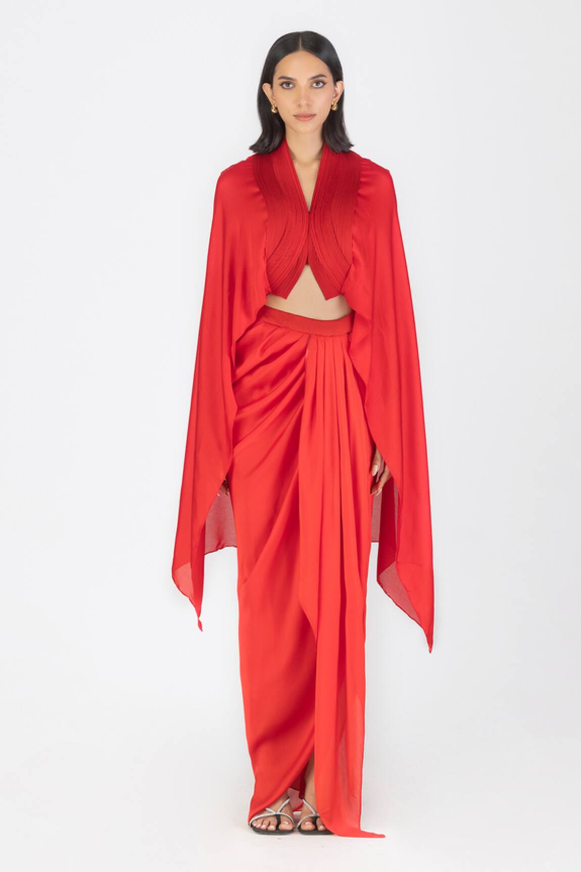 Metallic Embellished Cape & Draped Skirt Set