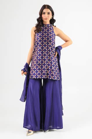 Bird Paradise Halter Neck Kurta With Flared Pant