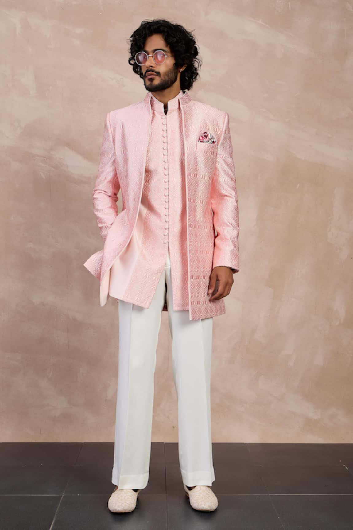 Showcasing Arjan Dugal’s latest Kurta Sets, Nehru Jacket & Sets, Sherwanis, Bandhgalas, Pant Sets, and Bottoms.
