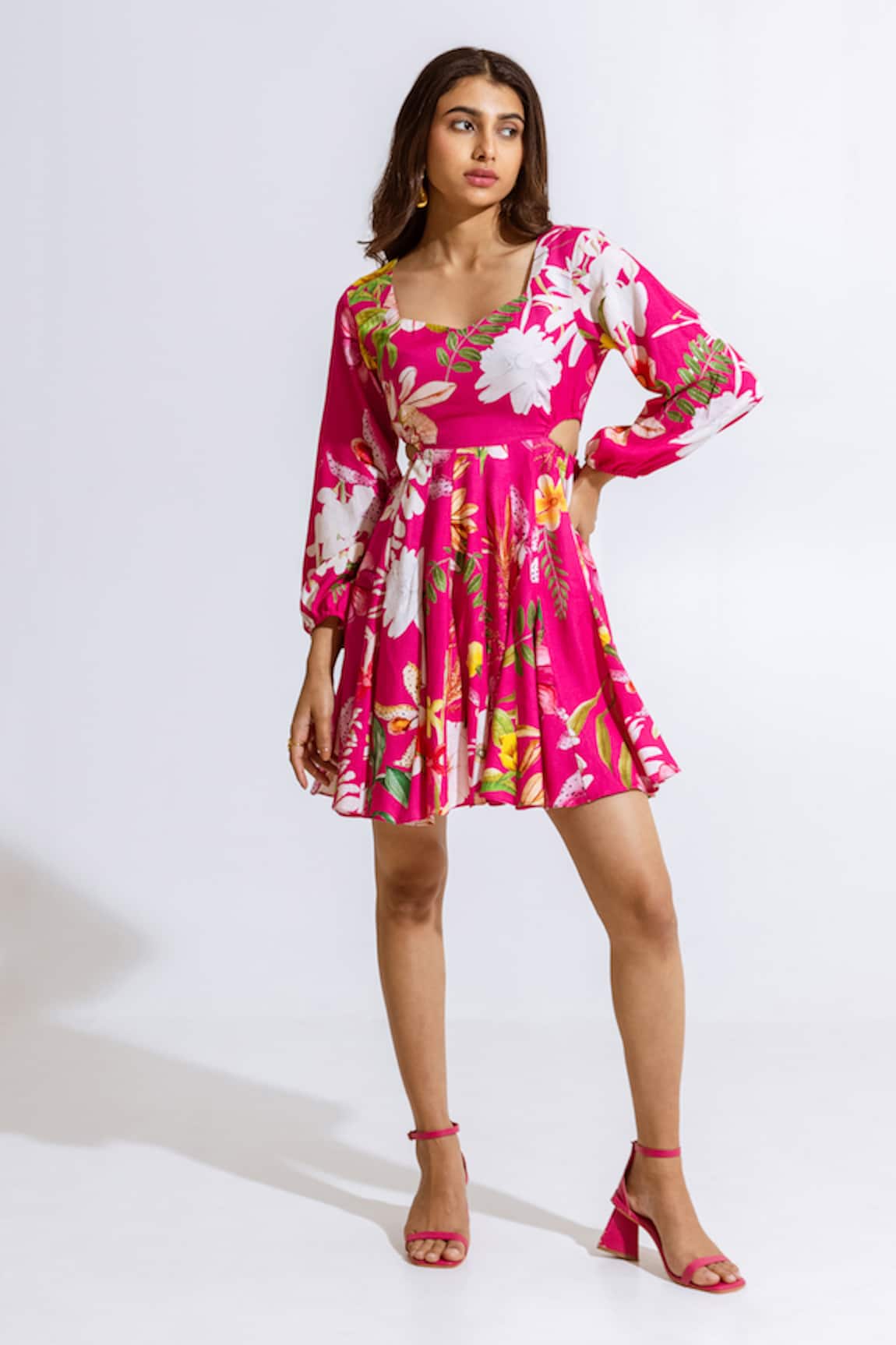 Floral Print One-Shoulder Kurta & Flared Pant Set