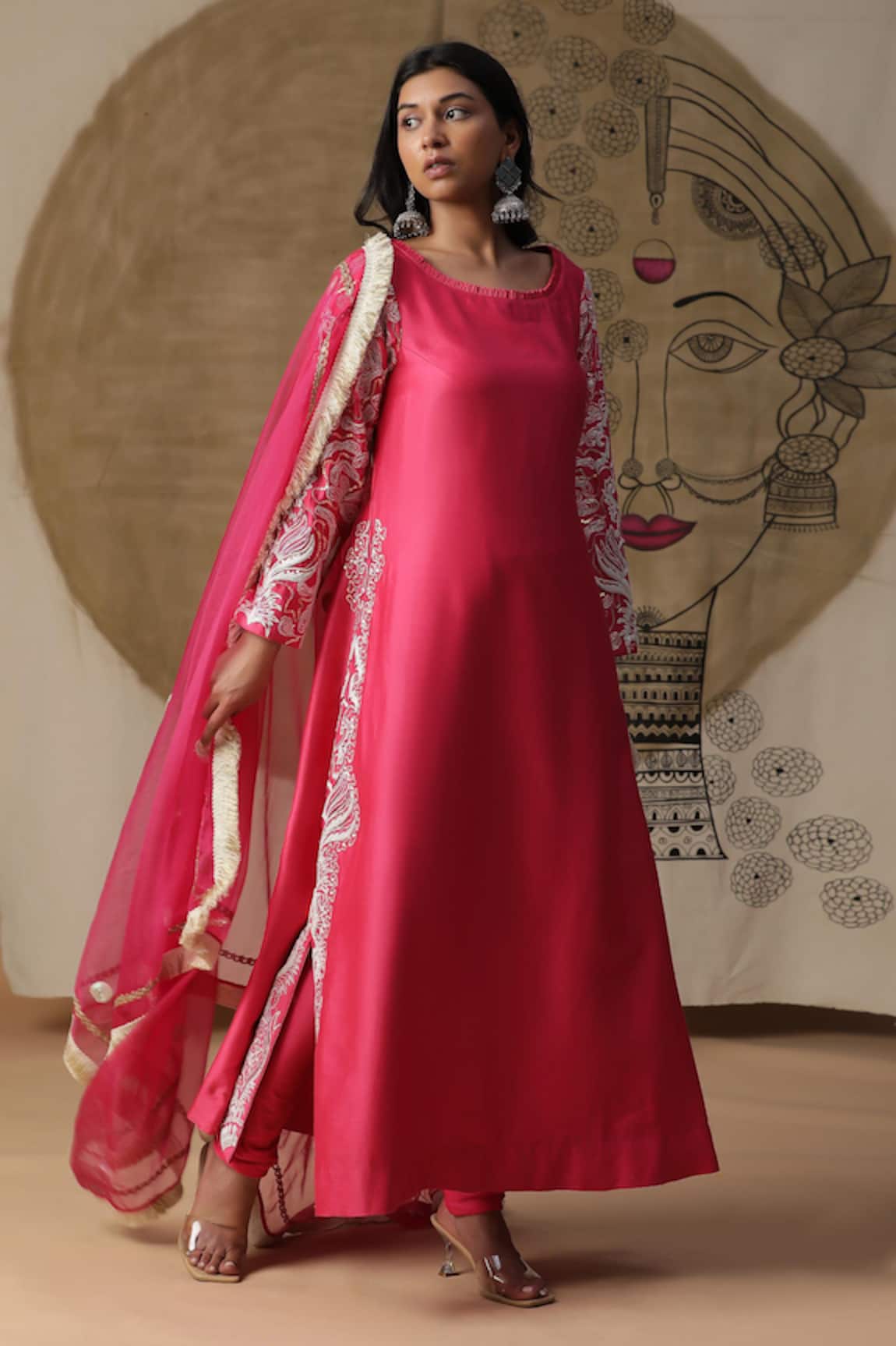 Chanderi Silk Hand Painted Kurta & Pant Set
