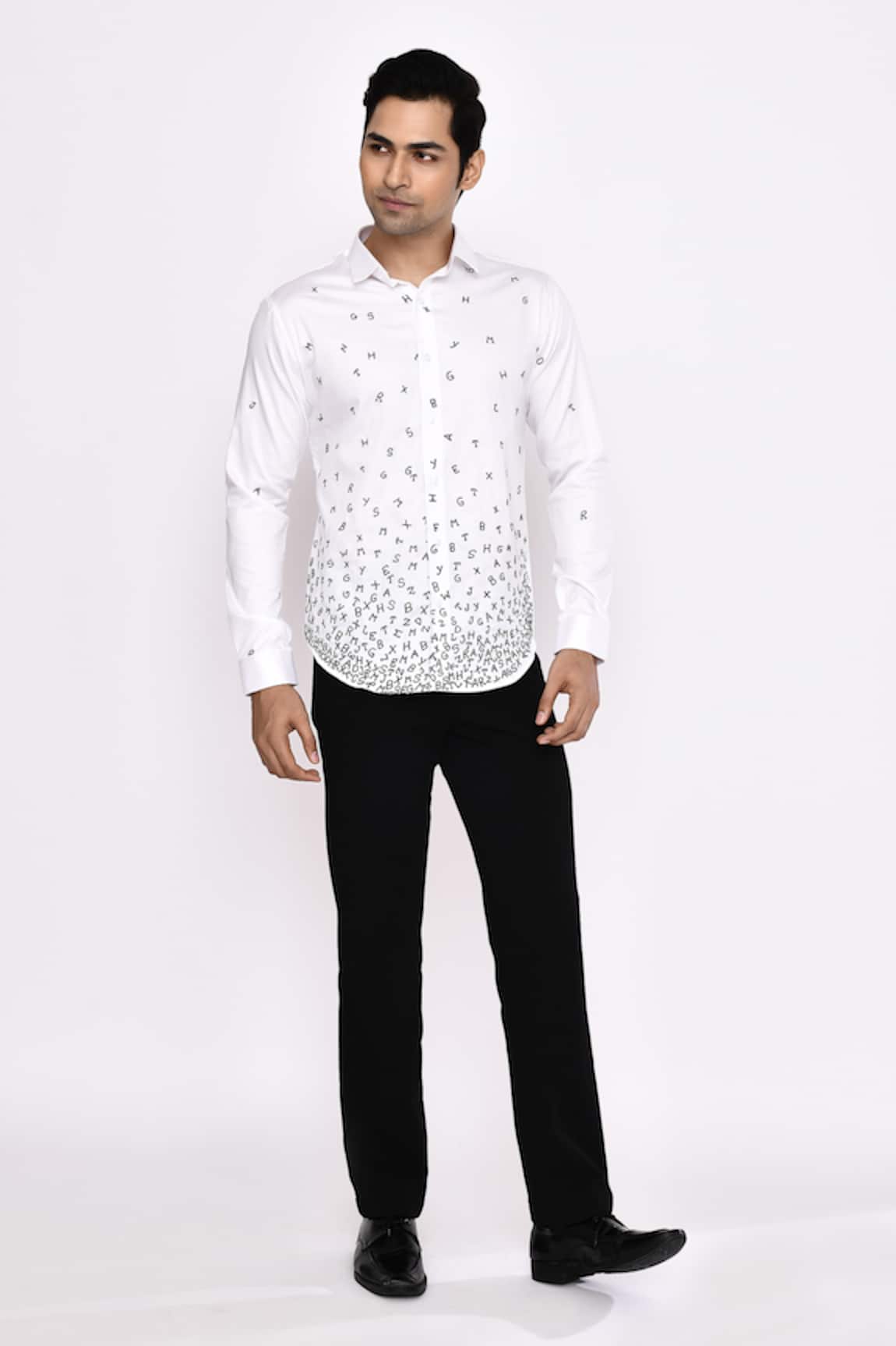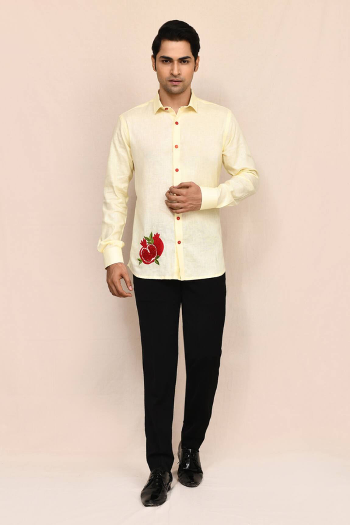 Beige Hand Work Shirt Jacket & Black Pant Set